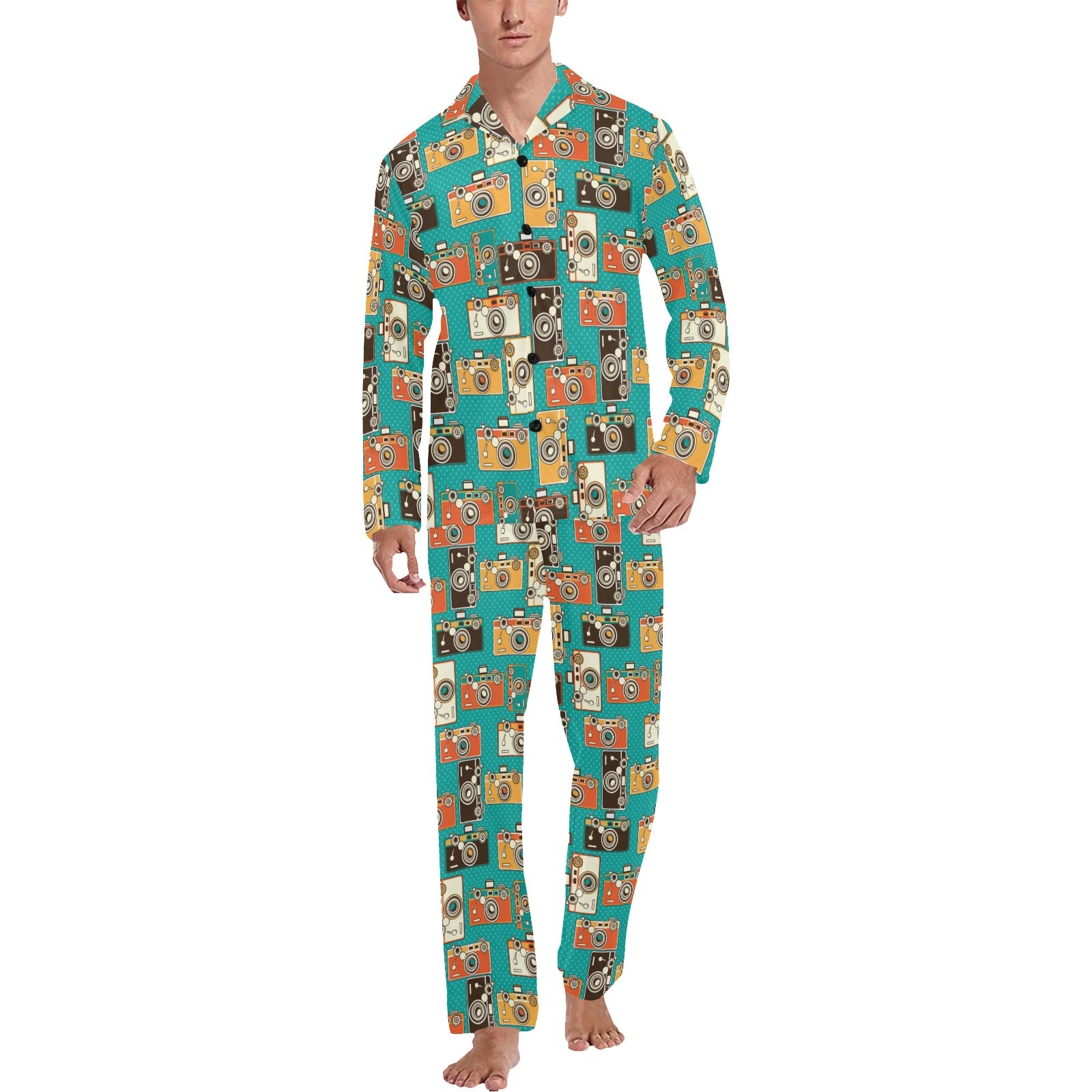 Camera Pattern Print Design 02 Men's Long Pajama Set Made to Order Item. It is hand-cut and sewn just for your order! This process starts as soon as your order is placed and may have a processing time of 5-9 business days before it ships.