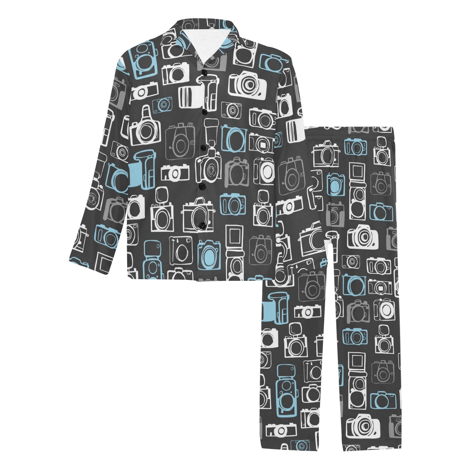 Camera Pattern Print Design 04 Men's Long Pajama Set Made to Order Item. It is hand-cut and sewn just for your order! This process starts as soon as your order is placed and may have a processing time of 5-9 business days before it ships.
