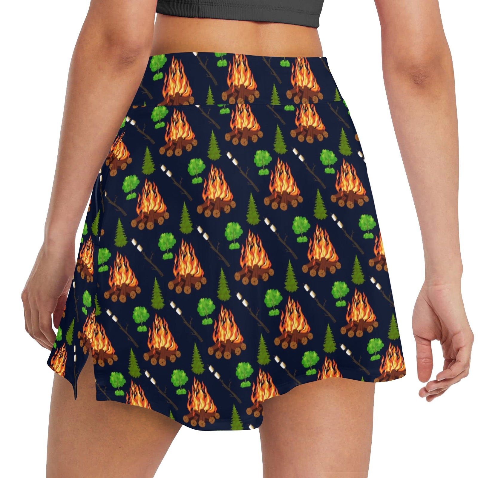 ✂ Camfire marshmallow Camping Design Print Women's Golf Skirt with Pocket Made to Order Item. It is hand-cut and sewn just for your order! This process starts as soon as your order is placed and may have a processing time of 5-9 business days before it ships.