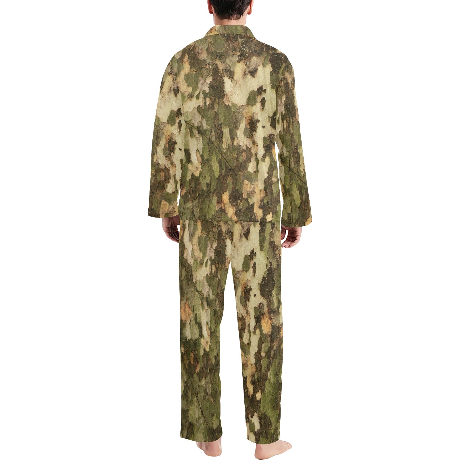 Camo Realistic Tree Texture Print Men's Long Pajama Set custom-made-to-order and handcrafted to the highest quality standards.