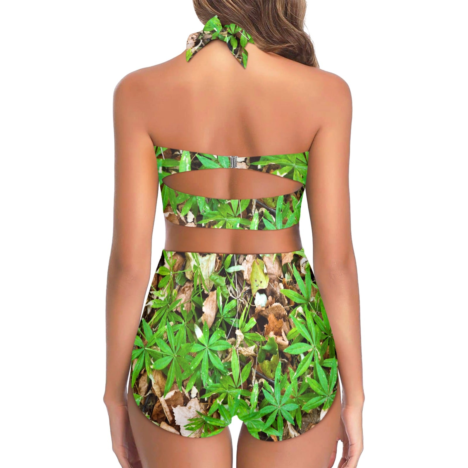 Camouflage Realistic Tree Fresh Print Halter Neck Bikini Swimsuit made-to-order and handcrafted to the highest quality standards.