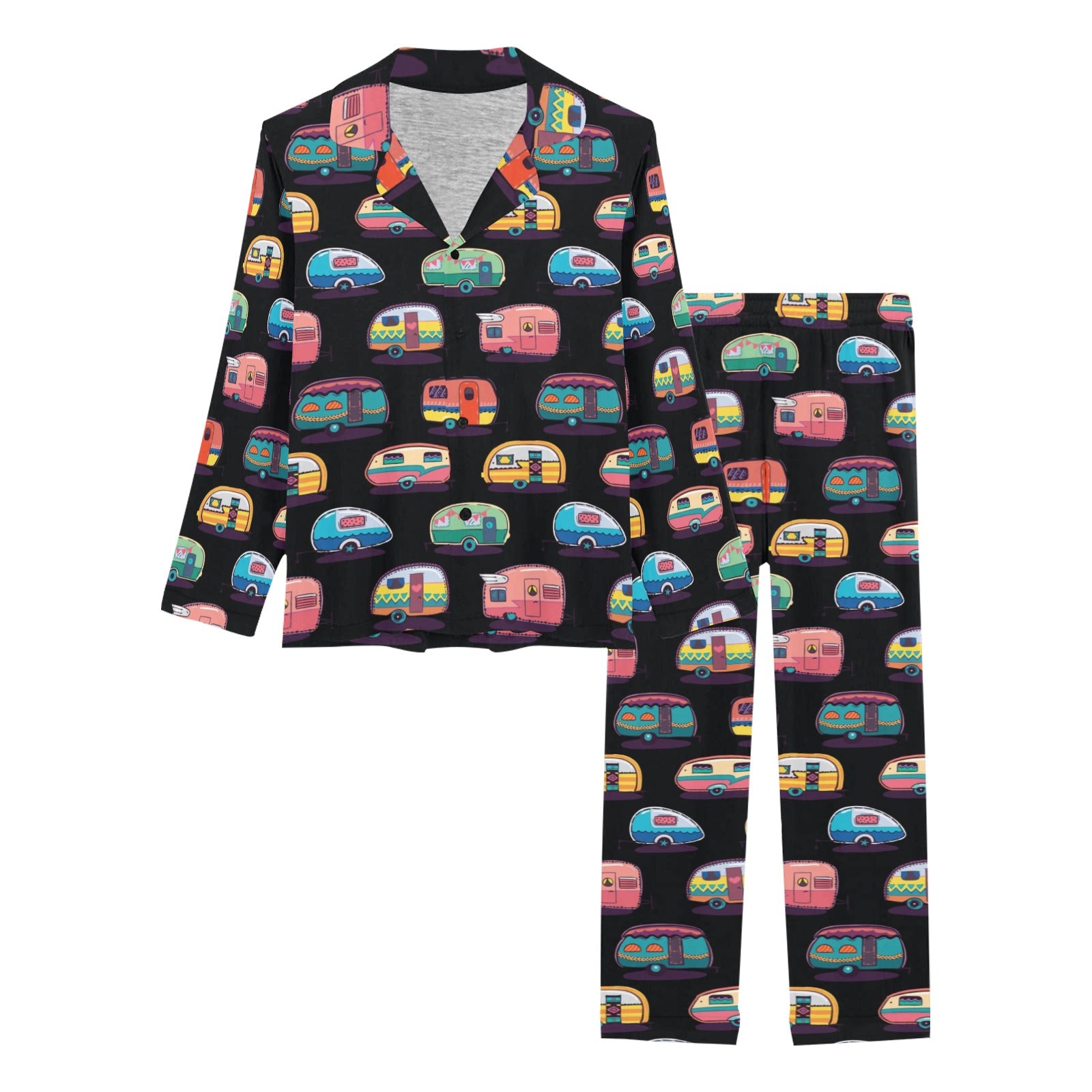 Camper Camping Pattern Women's Long Pajama Set Made to Order Item. It is hand-cut and sewn just for your order! This process starts as soon as your order is placed and may have a processing time of 5-9 business days before it ships.