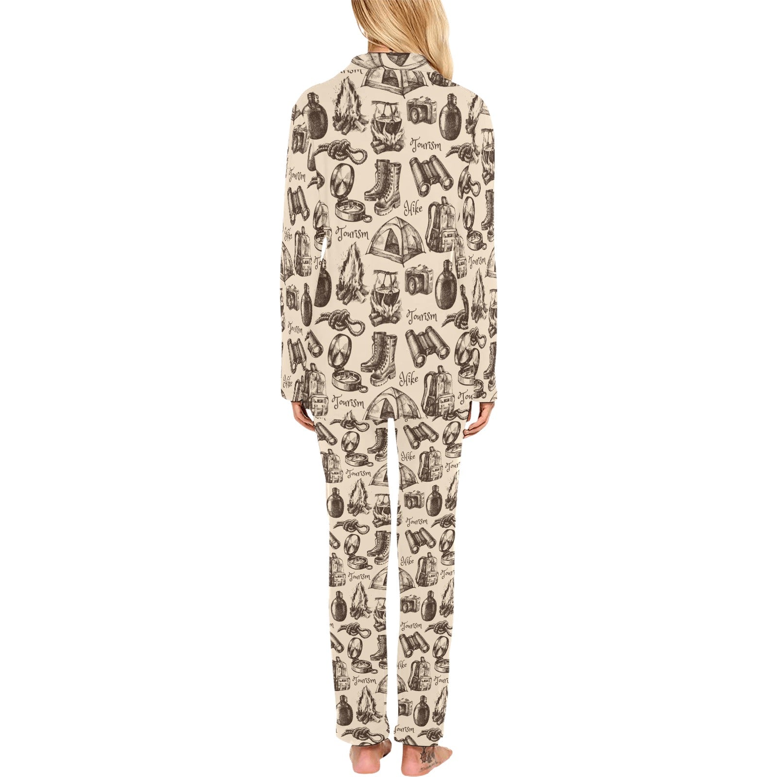 Camping Pattern Print Design 01 Women's Long Pajama Set Made to Order Item. It is hand-cut and sewn just for your order! This process starts as soon as your order is placed and may have a processing time of 5-9 business days before it ships.