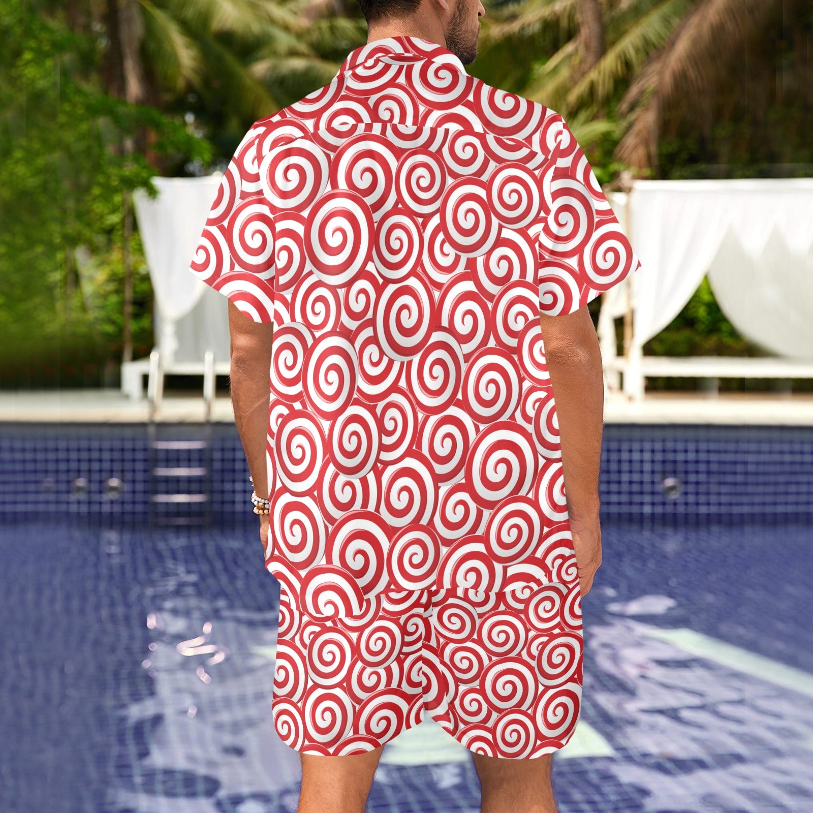 Candy Pattern Print Design 03 Men's Beach Shirt and Shorts Set. It is hand-cut and sewn just for your order! This process starts as soon as your order is placed and may have a processing time of 5-9 business days before it ships.