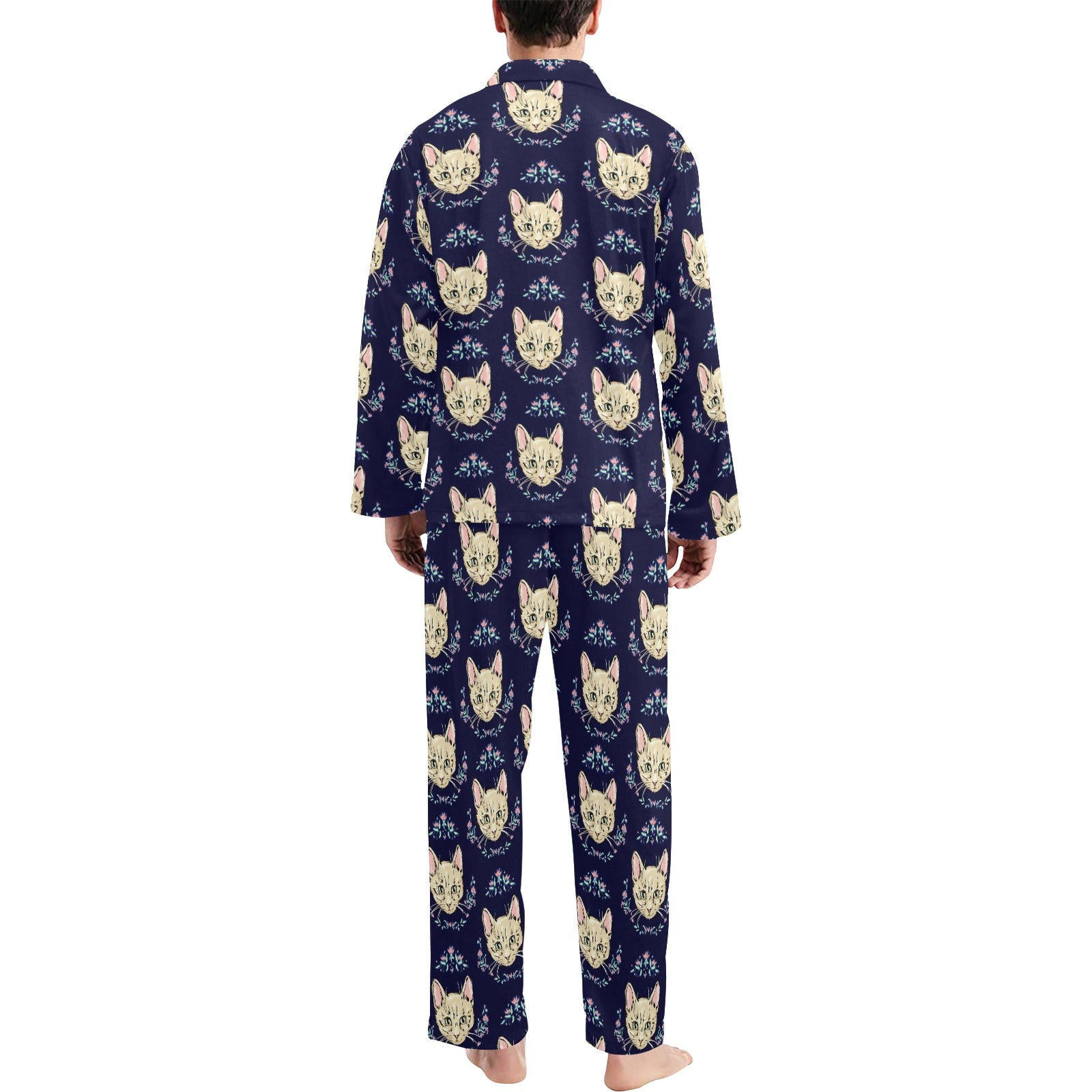 Cat Head with flower Print Pattern Men's Long Pajama Set