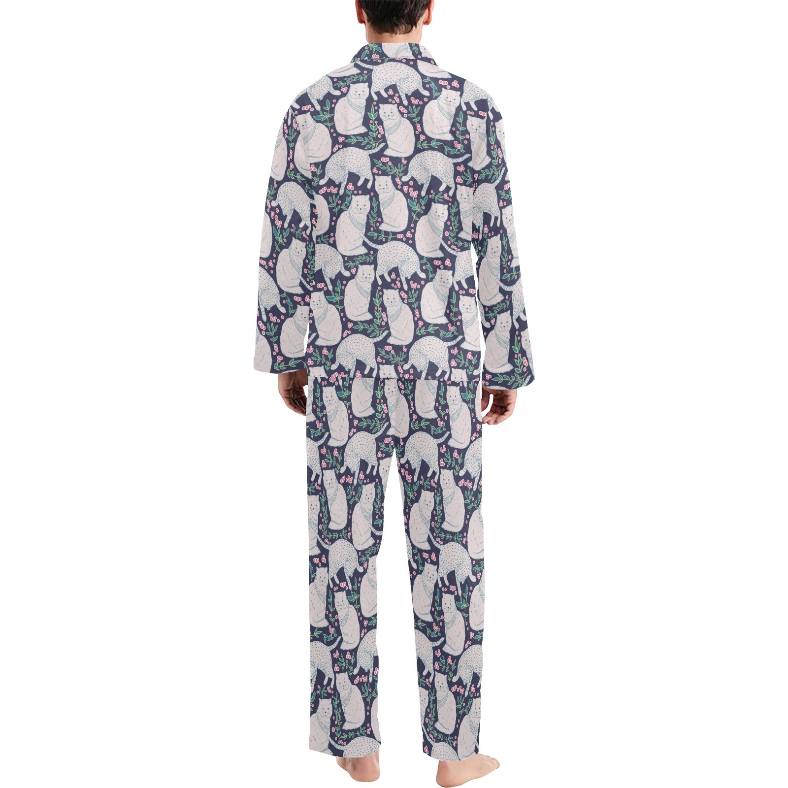 Cat Pattern Print Design 06 Men's Long Pajama Set