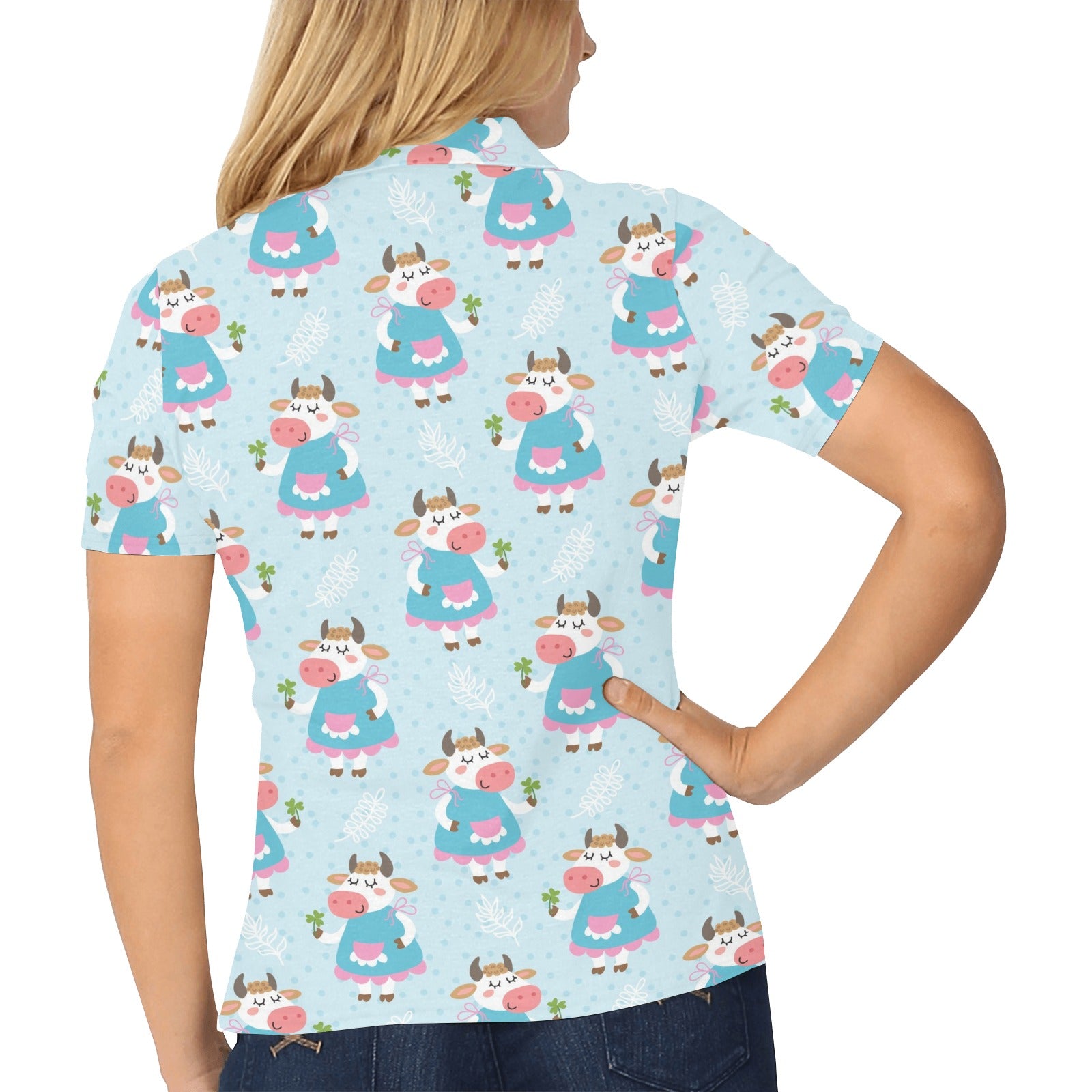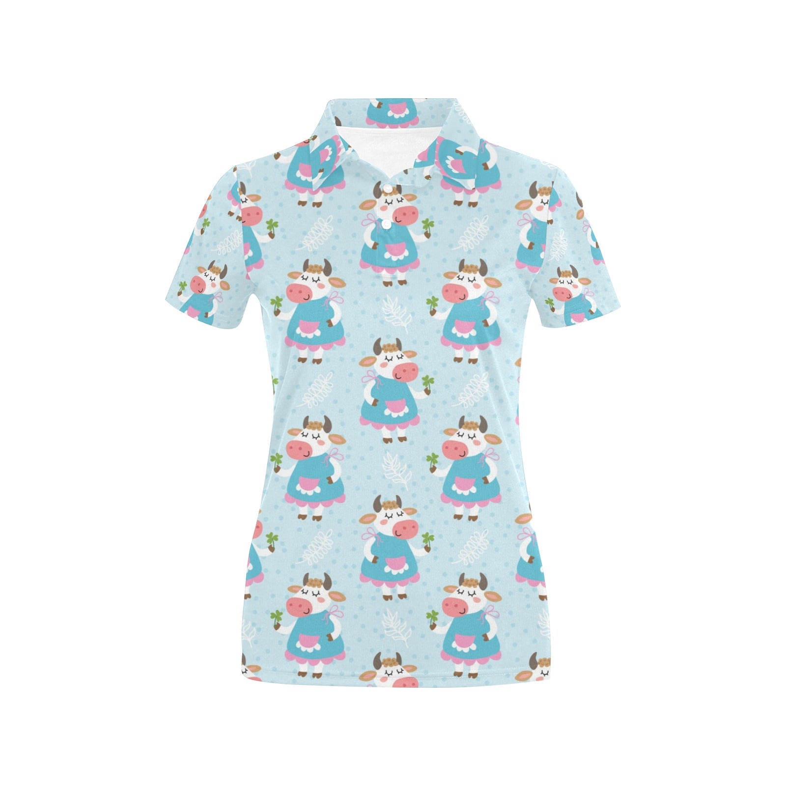 Cattle Happy Pattern Print Design 03 Women's Polo Shirt