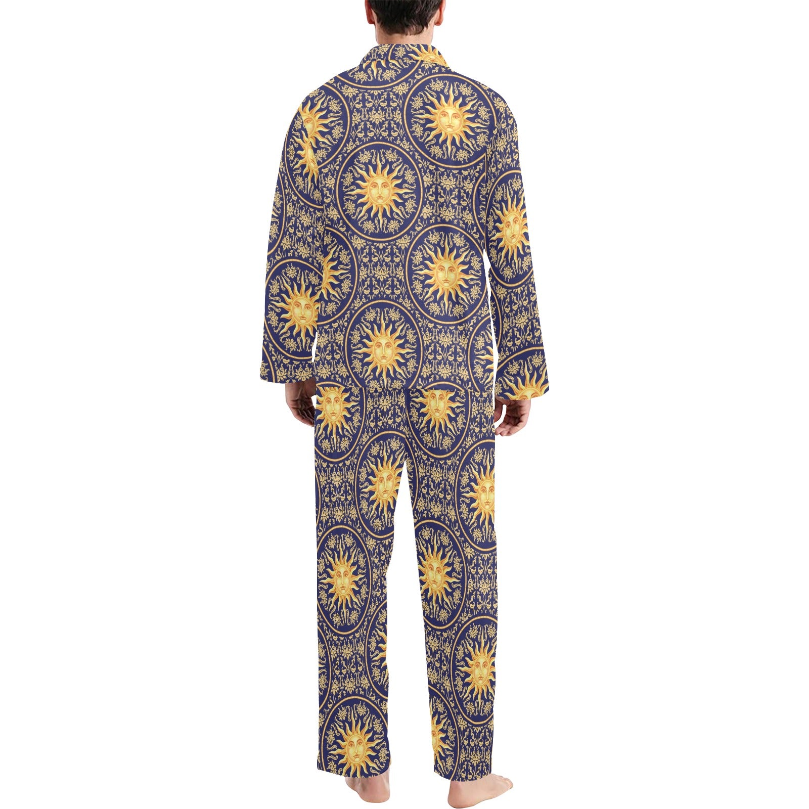 Celestial Gold Sun Face Men's Long Pajama Set custom-made-to-order and handcrafted to the highest quality standards.
