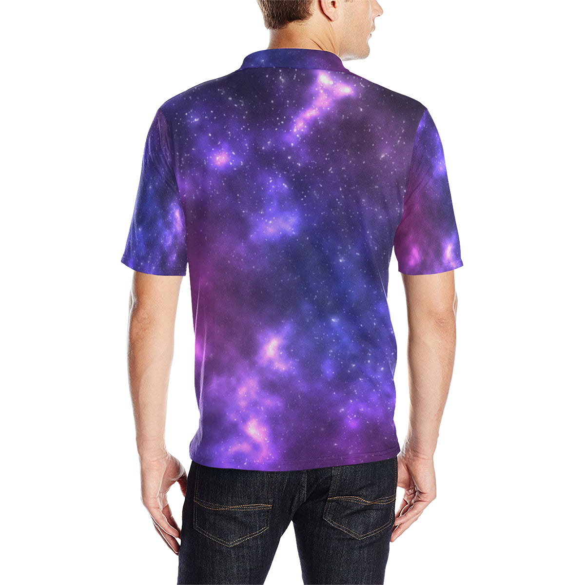 Celestial Purple Blue Galaxy Men Polo Shirt