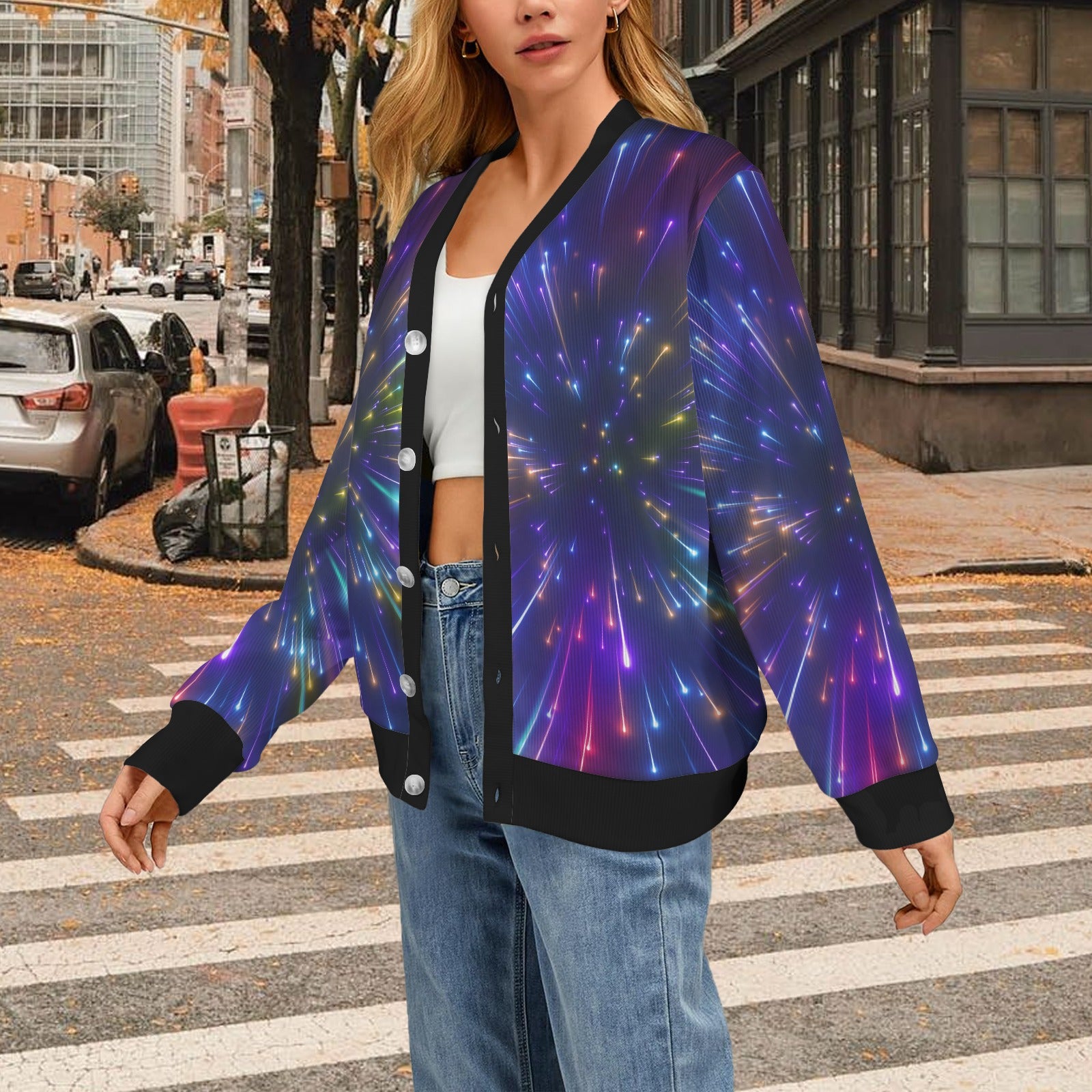 Celestial Rainbow Speed Light Women's Cardigan made-to-order and handcrafted to the highest quality standards.