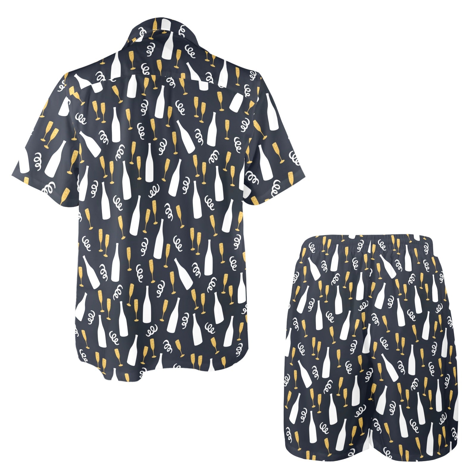 Champagne Pattern Print Design 01 Men's Beach Shirt and Shorts Set. It is hand-cut and sewn just for your order! This process starts as soon as your order is placed and may have a processing time of 5-9 business days before it ships.