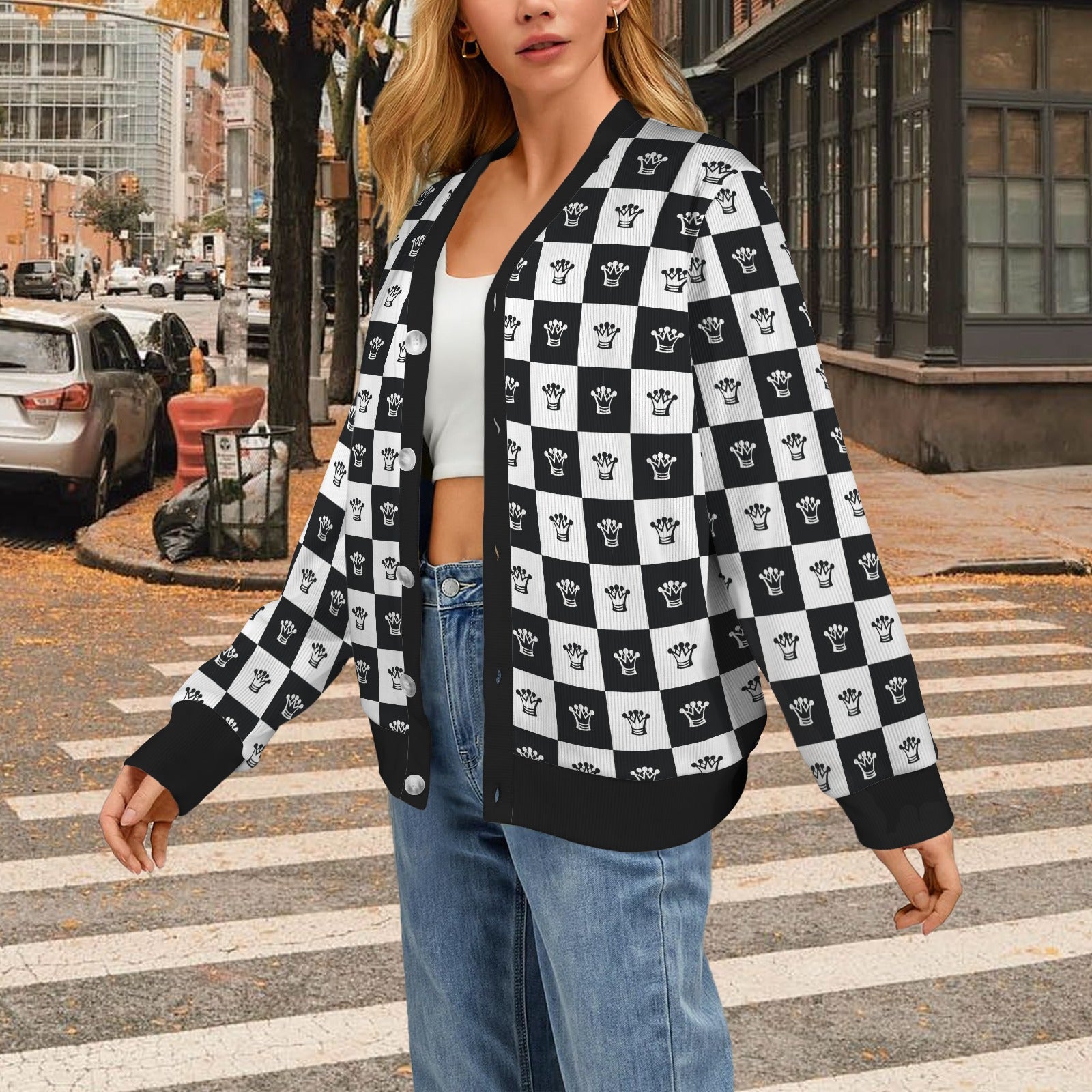 Checkered Flag Crown Pattern Women's Cardigan made-to-order and handcrafted to the highest quality standards.
