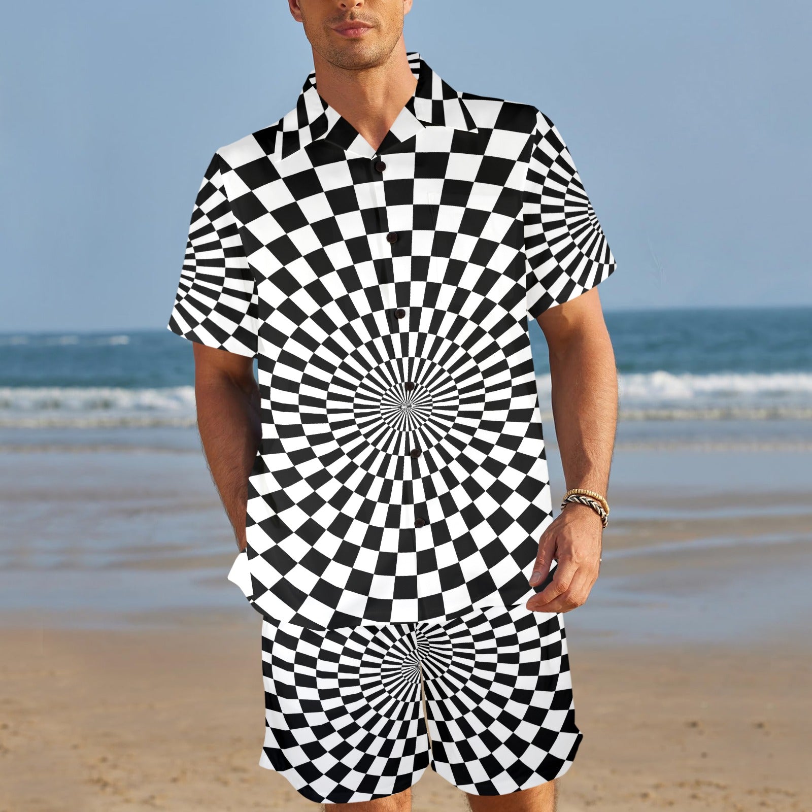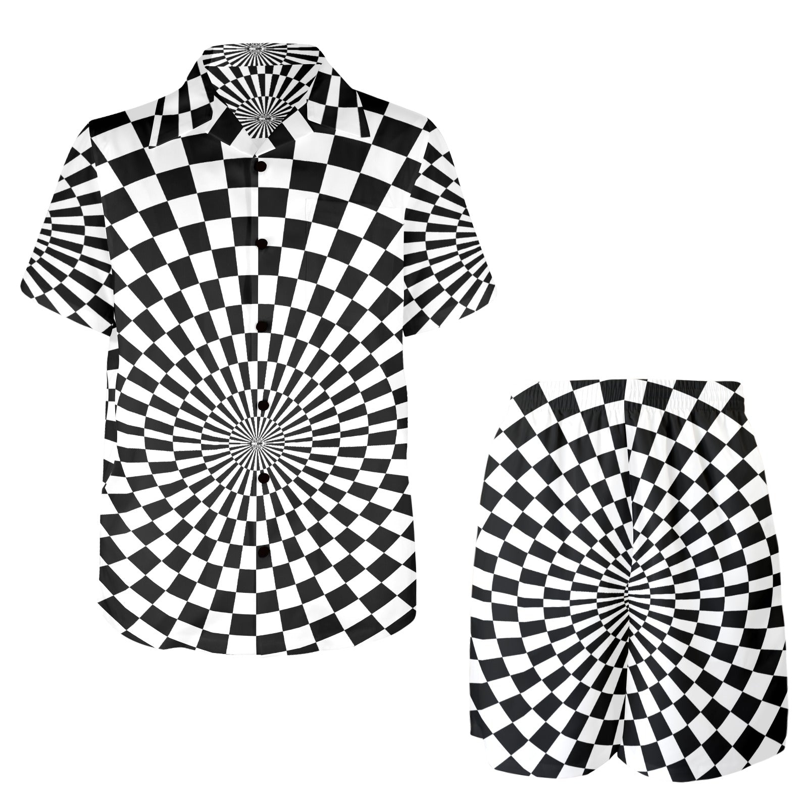 Checkered Flag Optical illusion Men's Beach Shirt and Shorts Set