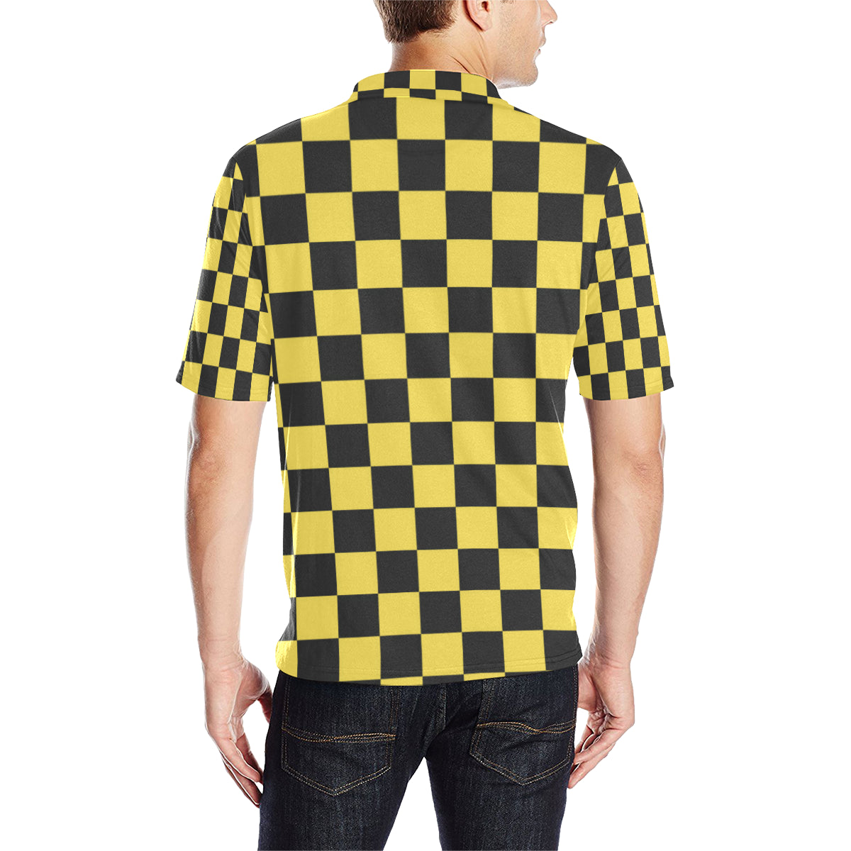 Checkered Yellow Pattern Print Design 03 Men Polo Shirt