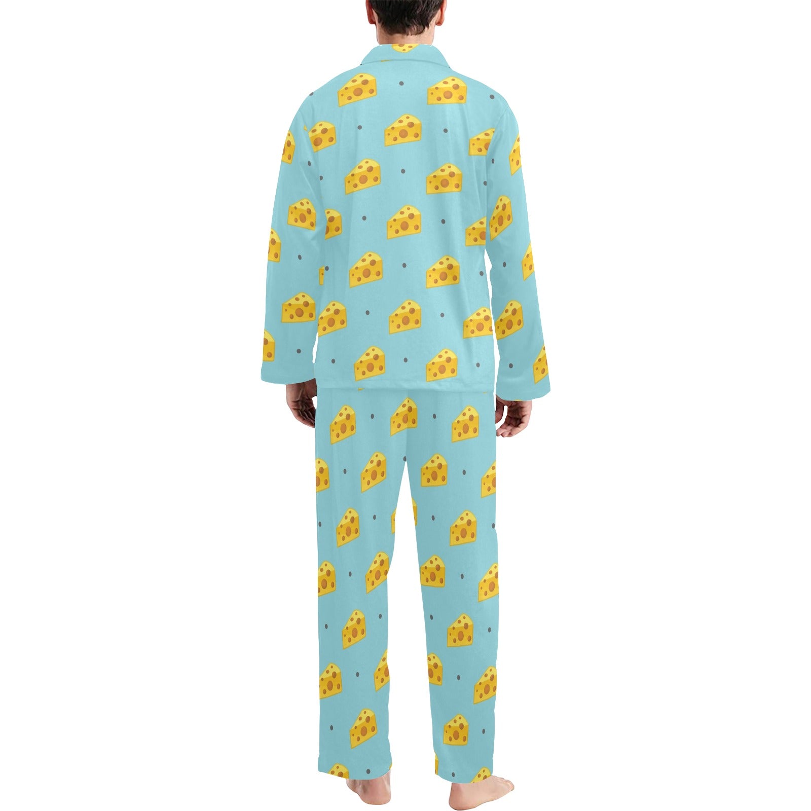 Cheese Pattern Print Design 02 Men's Long Pajama Set Made to Order Item. It is hand-cut and sewn just for your order! This process starts as soon as your order is placed and may have a processing time of 5-9 business days before it ships.