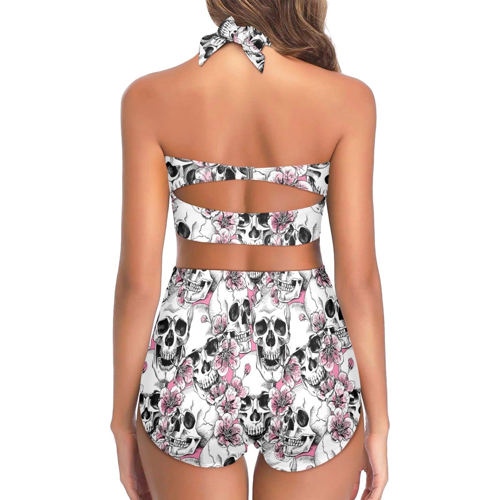 Cherry Blossom Pattern Print Design CB03 Halter Neck Bikini Swimsuit made-to-order and handcrafted to the highest quality standards.