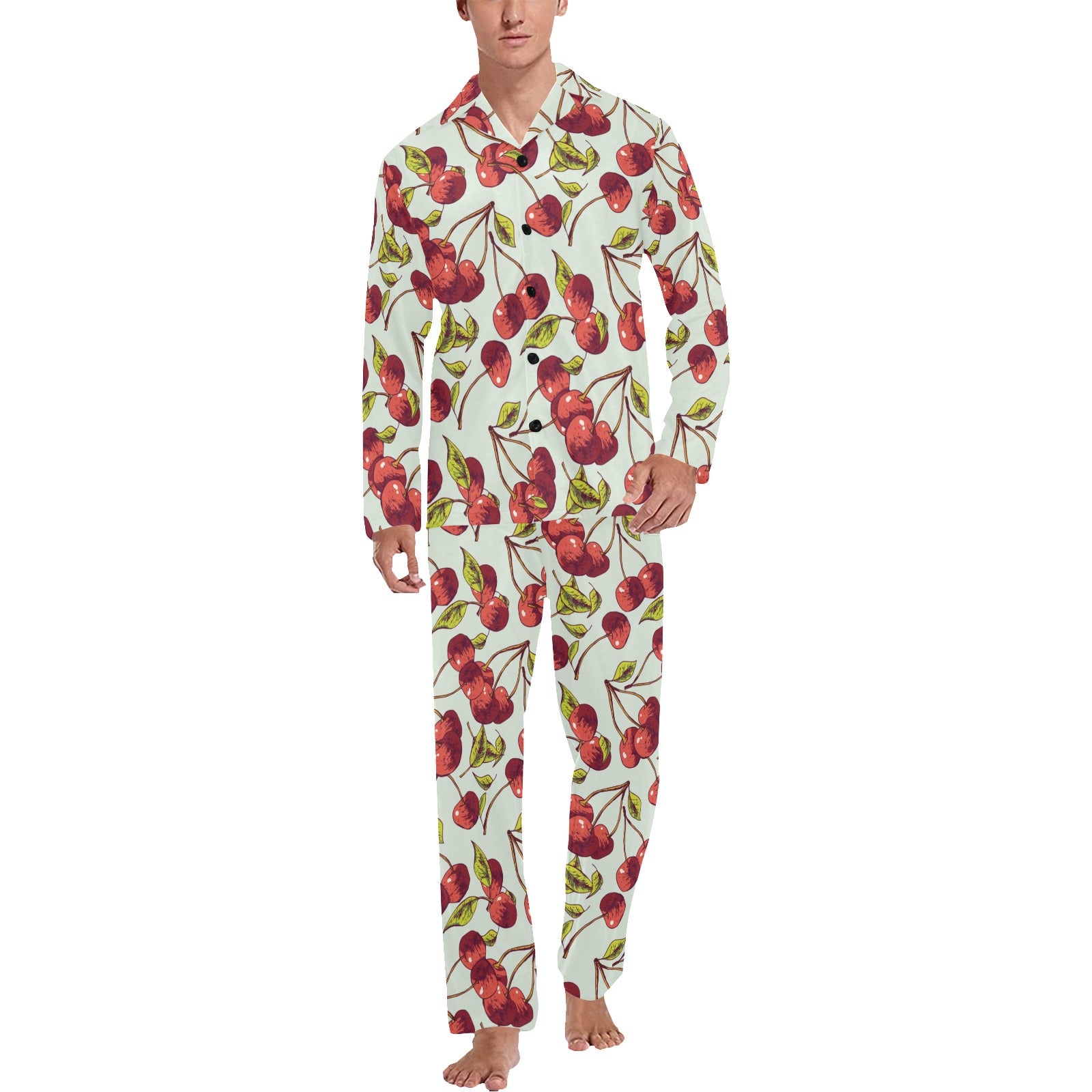 Cherry Hand Draw Men's Long Pajama Set custom-made-to-order and handcrafted to the highest quality standards.