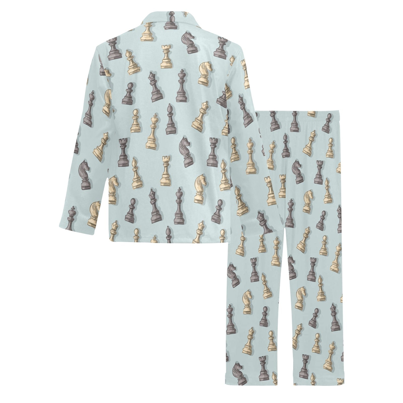 Chess Pattern Print Design 02 Men's Long Pajama Set Made to Order Item. It is hand-cut and sewn just for your order! This process starts as soon as your order is placed and may have a processing time of 5-9 business days before it ships.