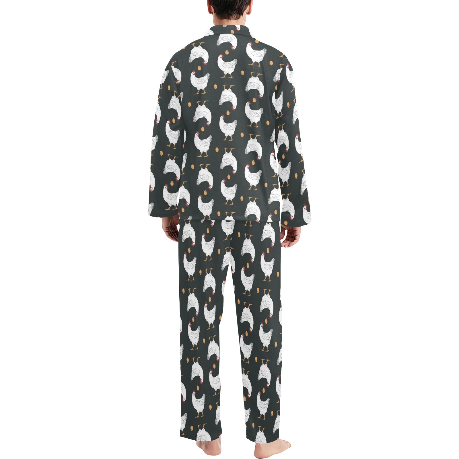 Chicken Pattern Print Design 06 Men's Long Pajama Set Made to Order Item. It is hand-cut and sewn just for your order! This process starts as soon as your order is placed and may have a processing time of 5-9 business days before it ships.