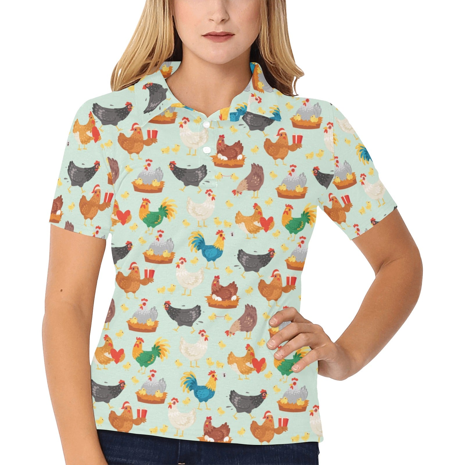 Chicken Pattern Print Design 07 Women's Polo Shirt