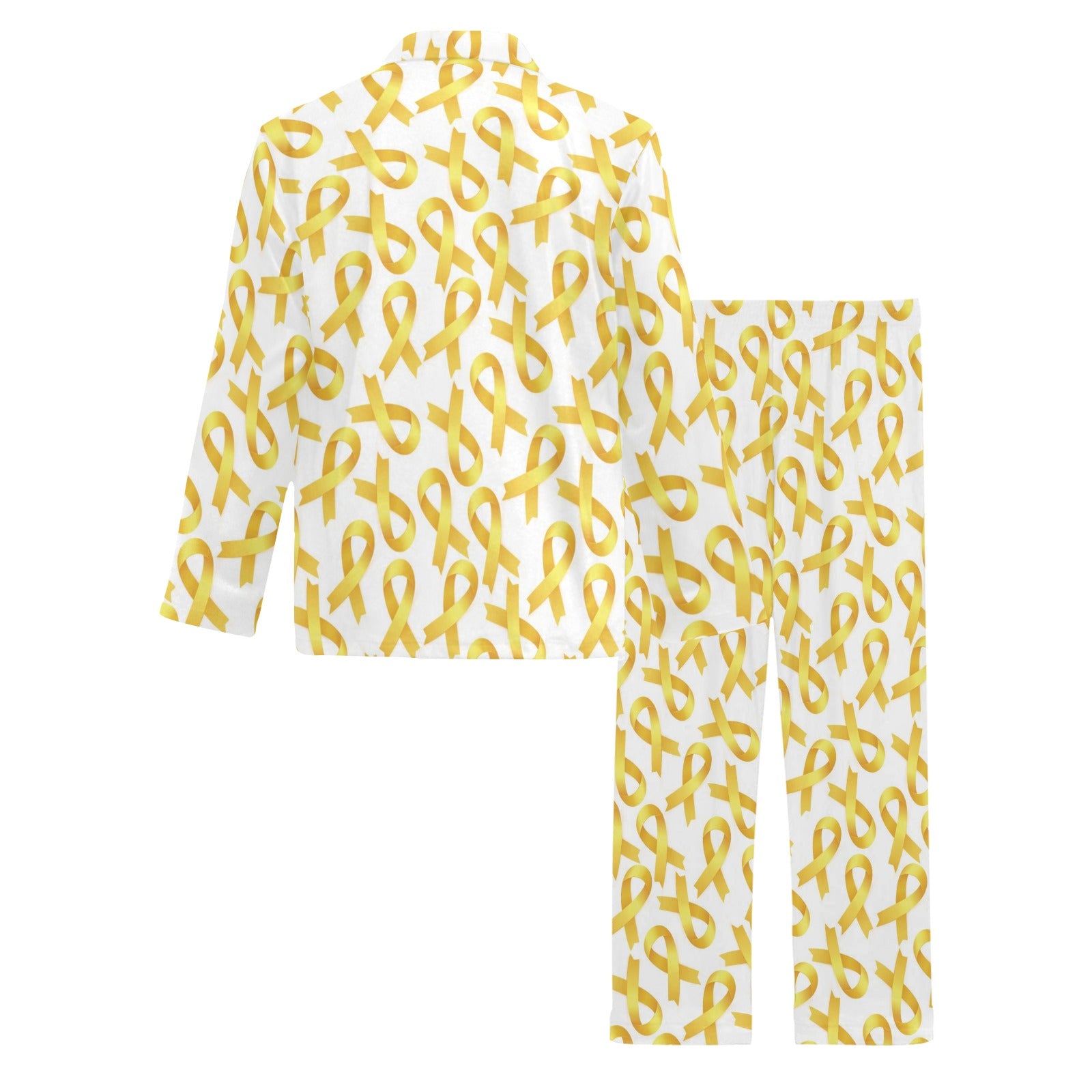Childhood cancer Pattern Print Design 02 Men's Long Pajama Set Made to Order Item. It is hand-cut and sewn just for your order! This process starts as soon as your order is placed and may have a processing time of 5-9 business days before it ships.
