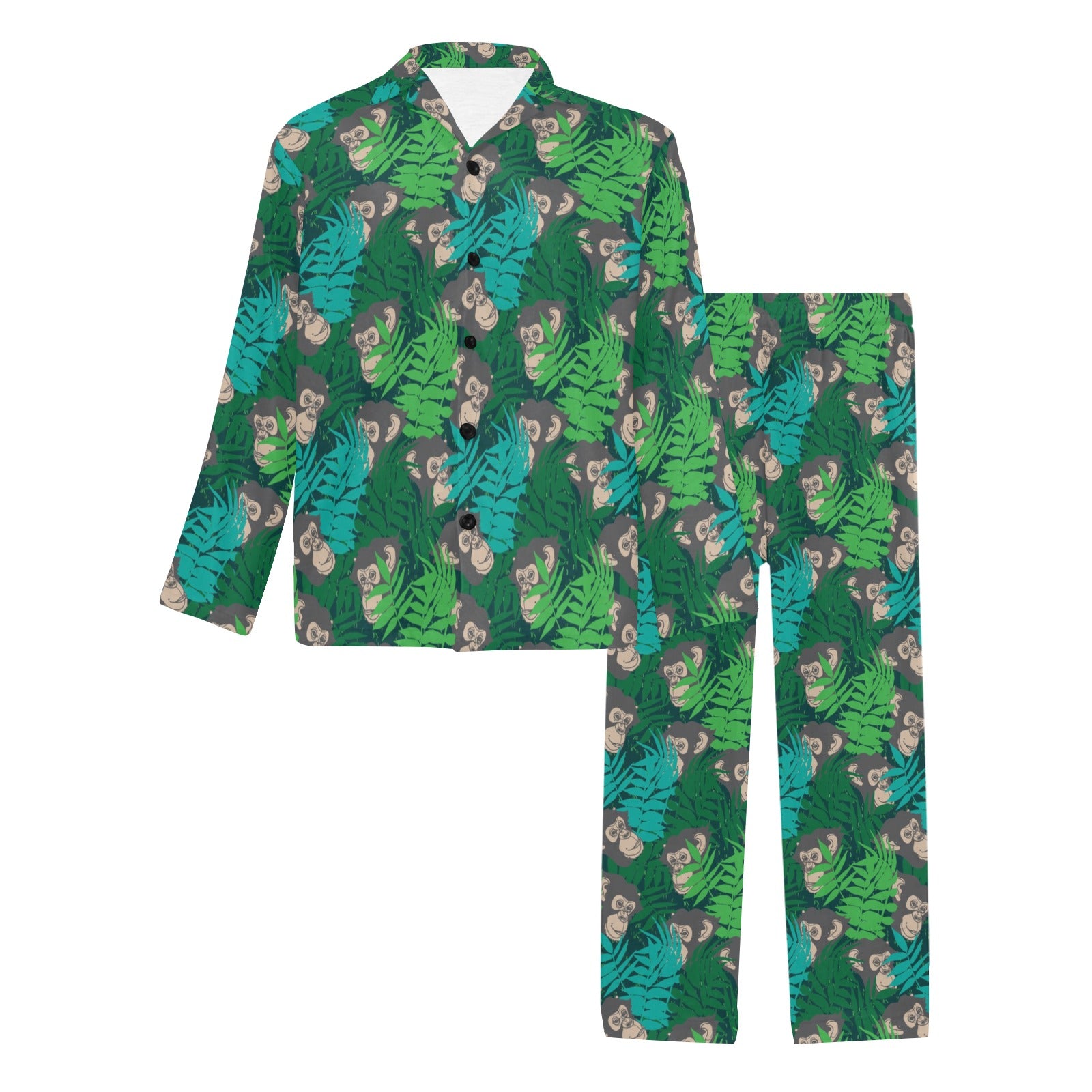 Chimpanzee Pattern Print Design 01 Men's Long Pajama Set Made to Order Item. It is hand-cut and sewn just for your order! This process starts as soon as your order is placed and may have a processing time of 5-9 business days before it ships.