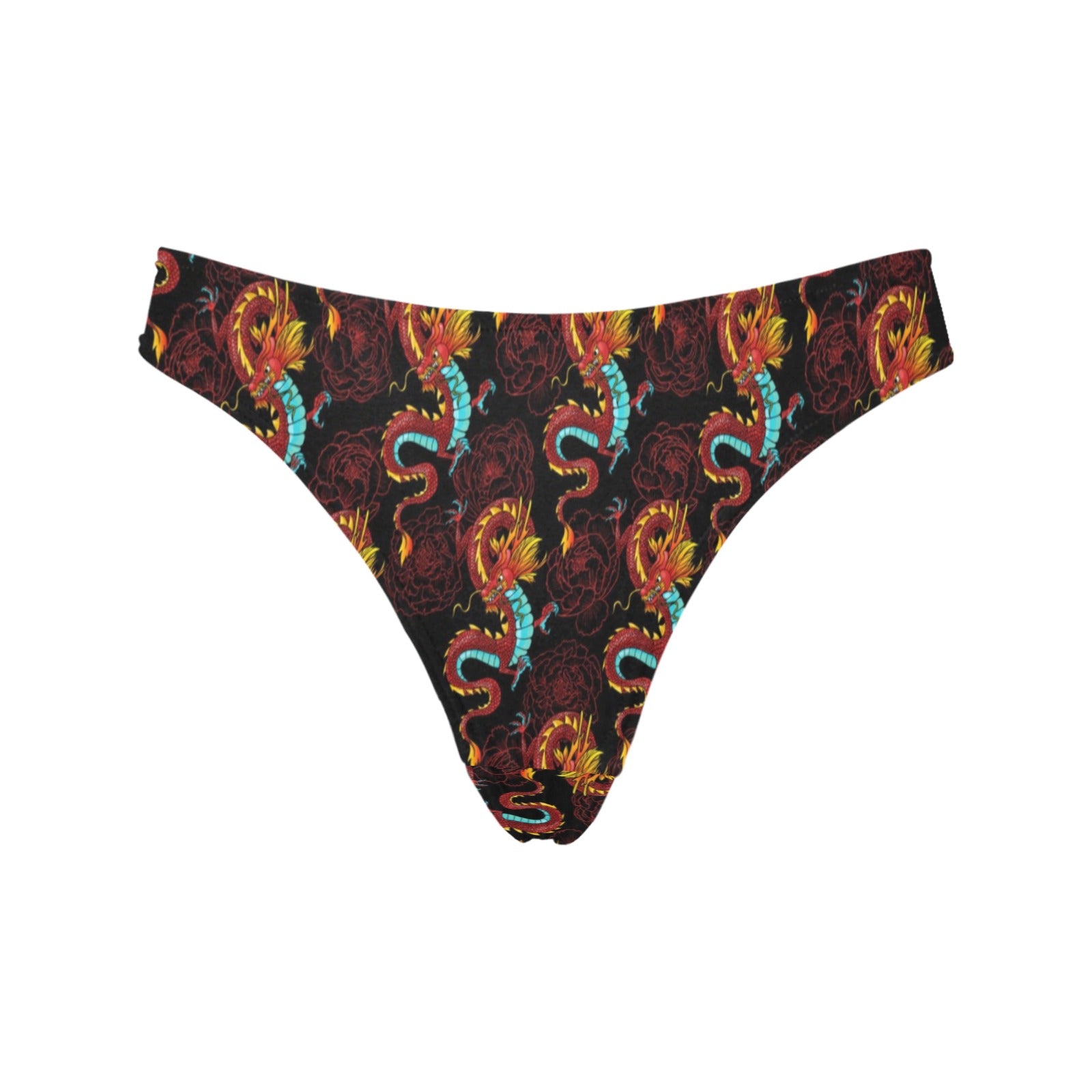 Chinese Dragons and Peonies Design Women's Thongsis custom-made-to-order and handcrafted to the highest quality standards.