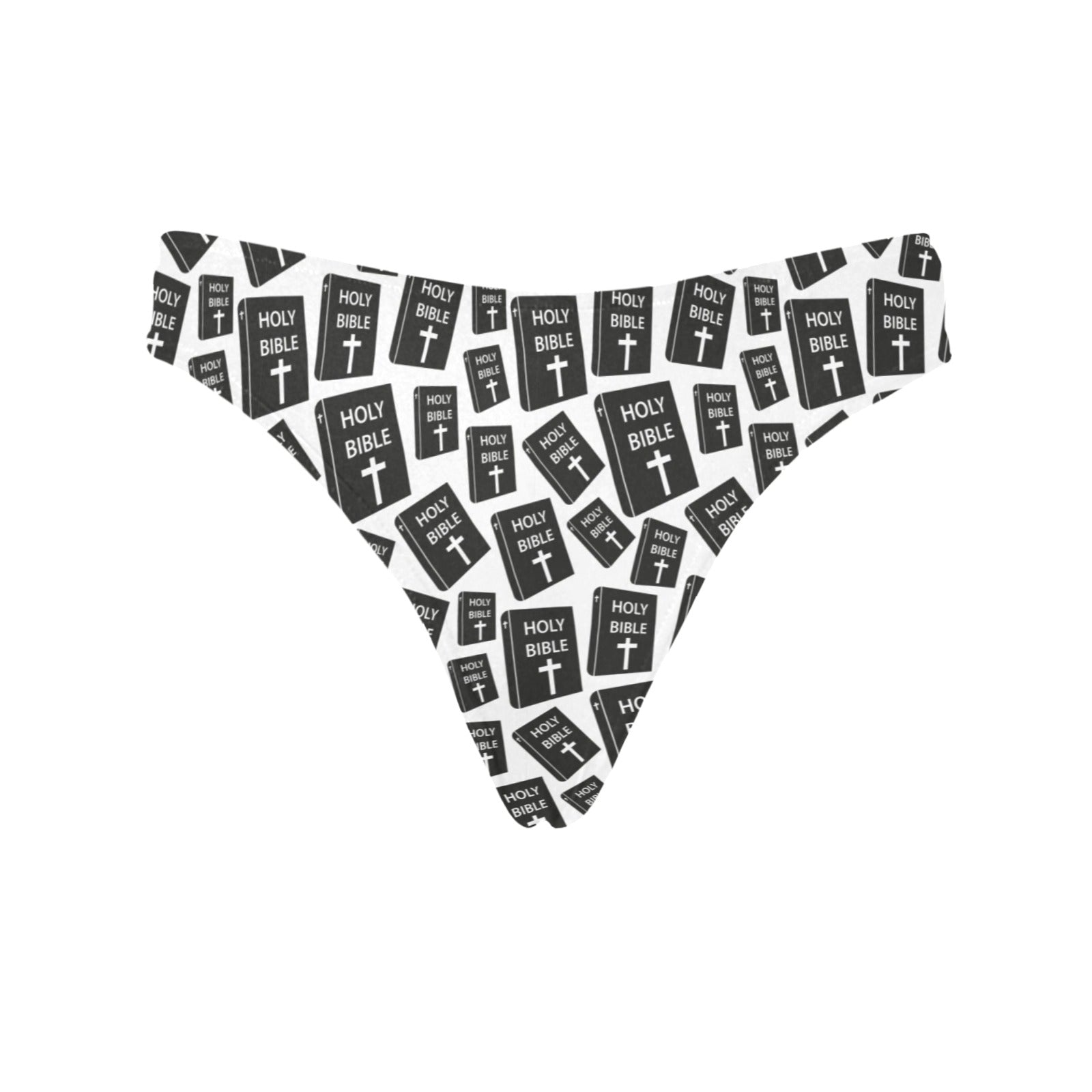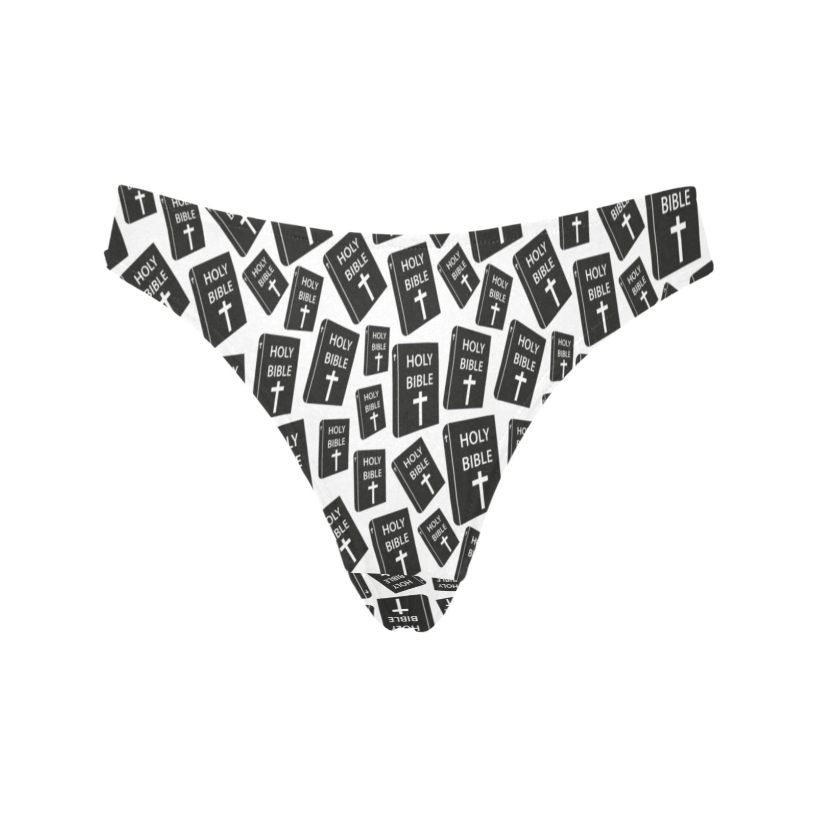 Christian Holy Bible Book Pattern Women's Thongsis custom-made-to-order and handcrafted to the highest quality standards.