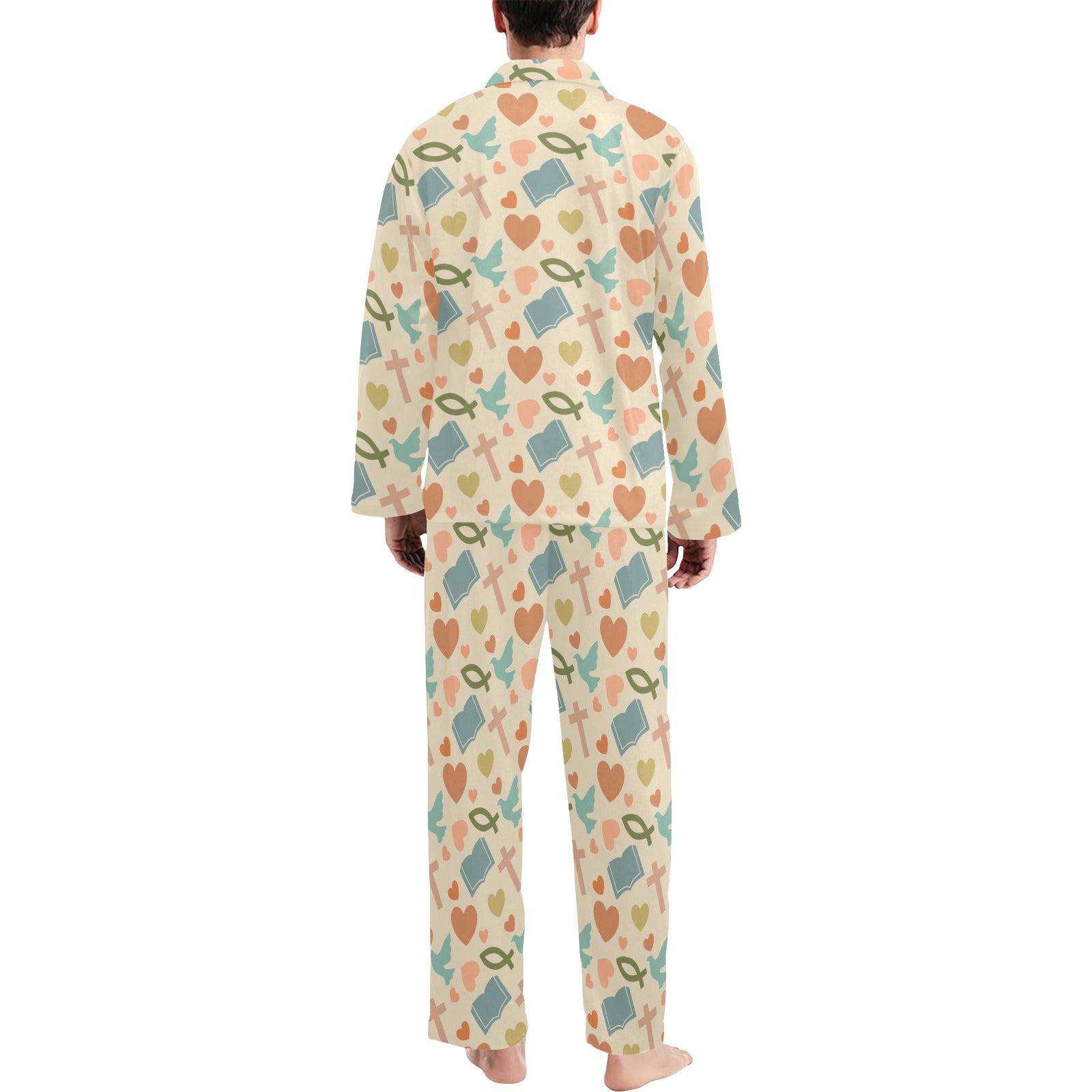 Christian Symbol Pattern Men's Long Pajama Set custom-made-to-order and handcrafted to the highest quality standards.