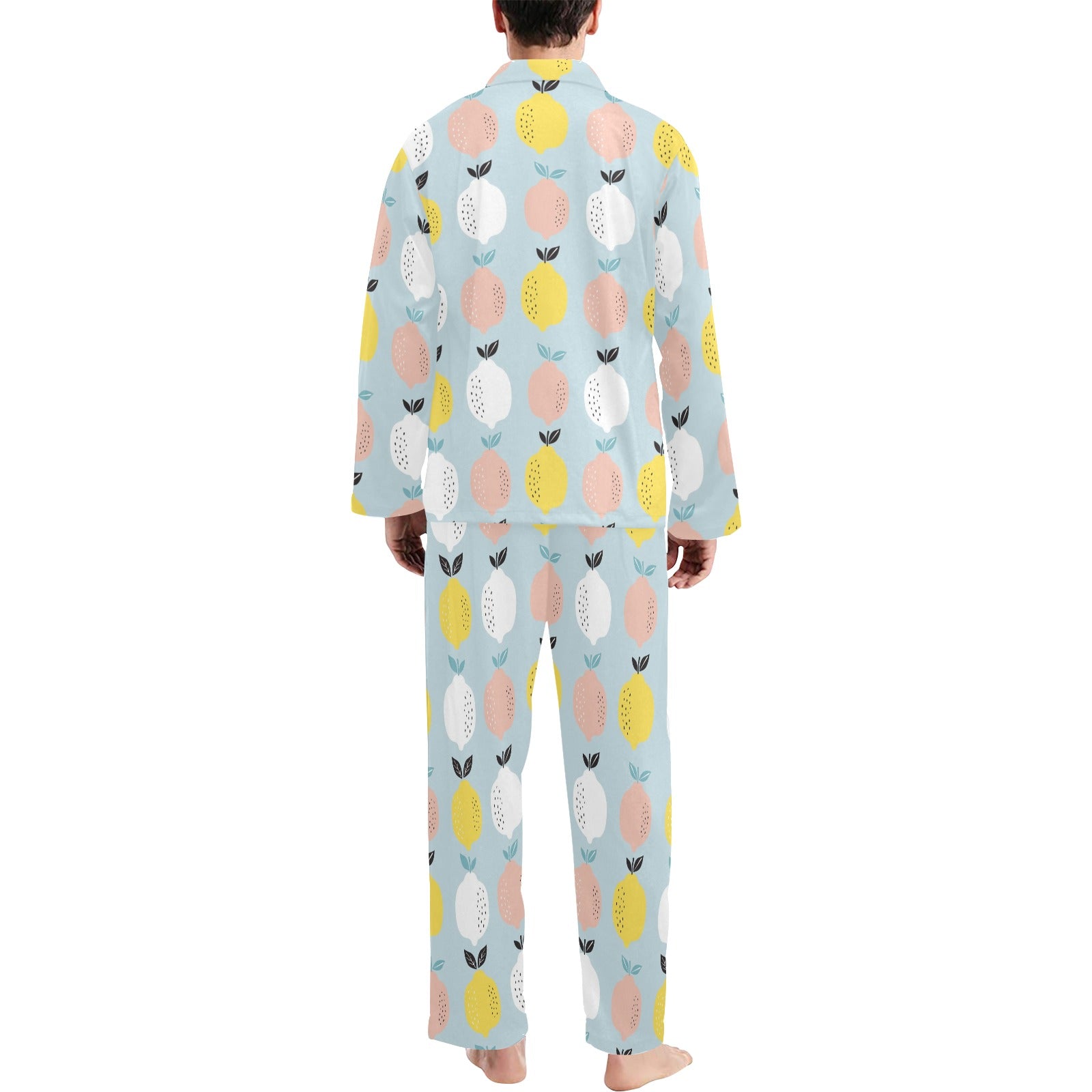 Citrus Pattern Print Design 03 Men's Long Pajama Set Made to Order Item. It is hand-cut and sewn just for your order! This process starts as soon as your order is placed and may have a processing time of 5-9 business days before it ships.
