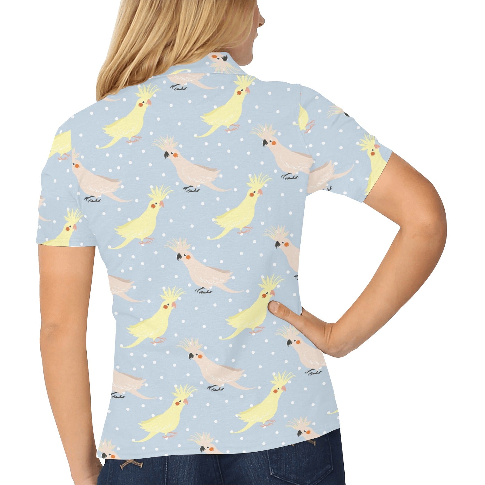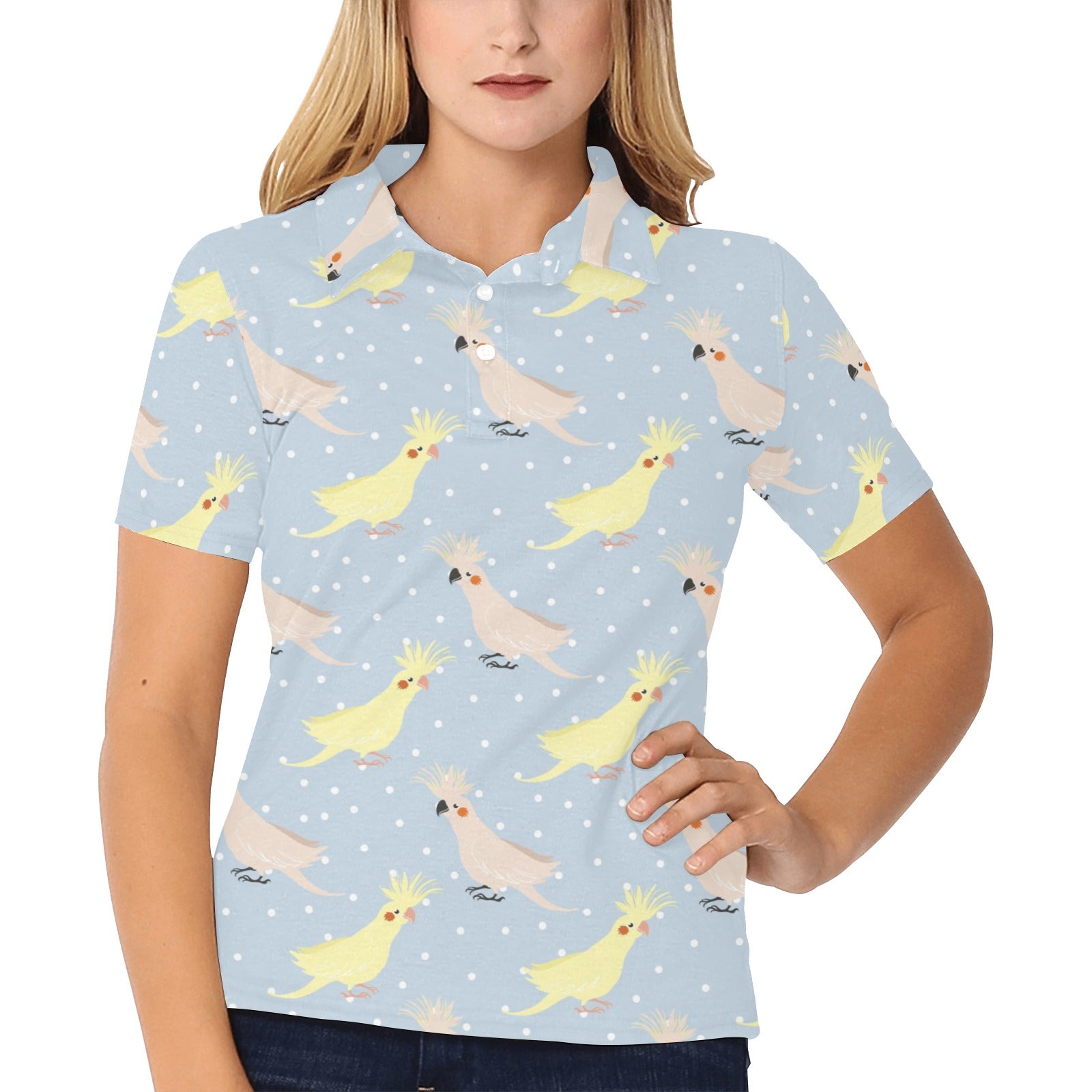 Cockatiel Pattern Print Design 03 Women's Polo Shirt