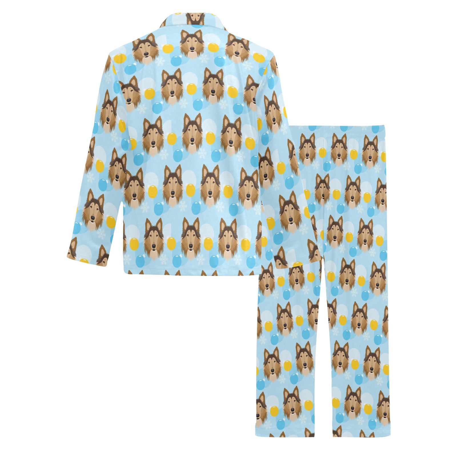 Collies Pattern Print Design 02 Men's Long Pajama Set Made to Order Item. It is hand-cut and sewn just for your order! This process starts as soon as your order is placed and may have a processing time of 5-9 business days before it ships.