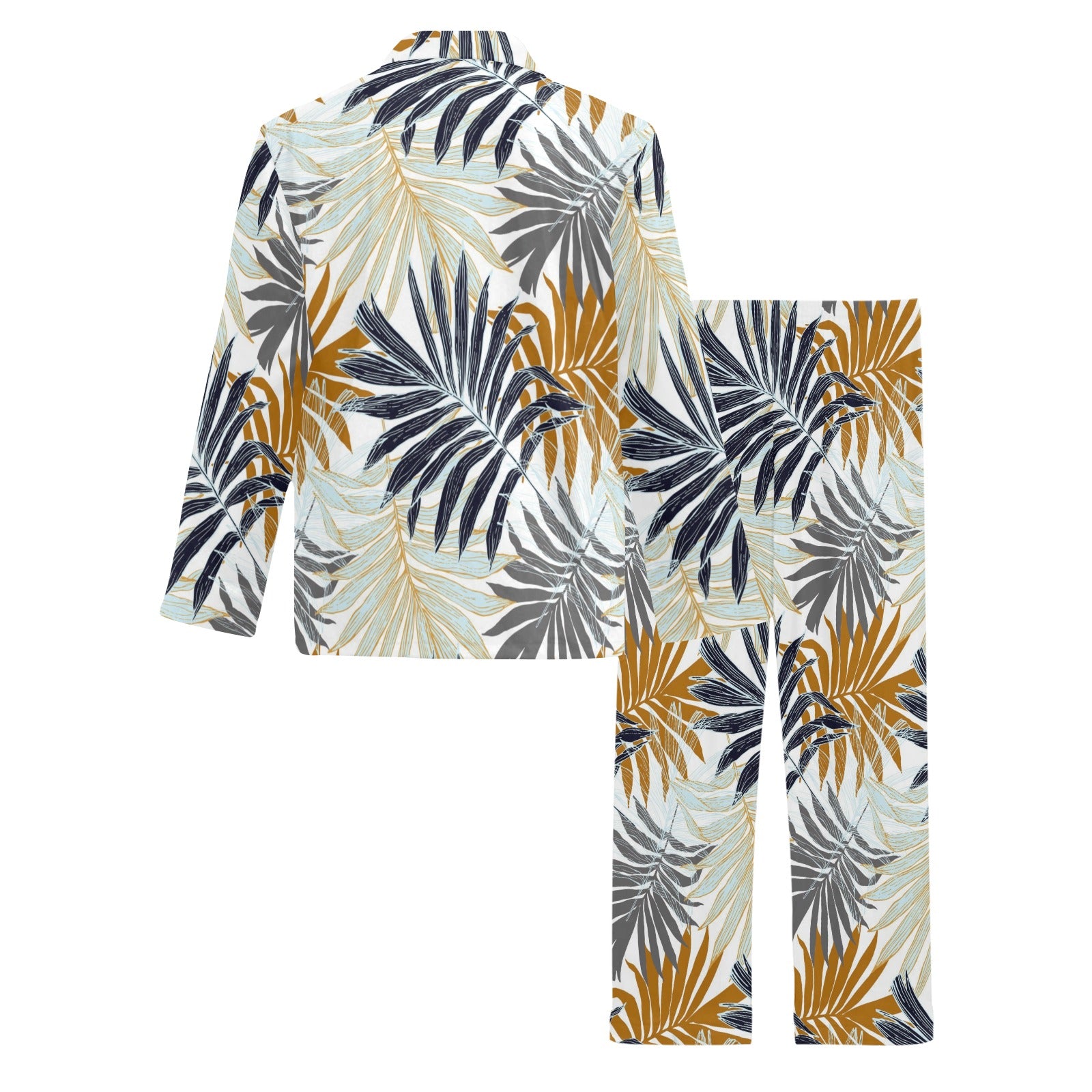 Colorful Tropical Palm Leaves Men's Long Pajama Set Made to Order Item. It is hand-cut and sewn just for your order! This process starts as soon as your order is placed and may have a processing time of 5-9 business days before it ships.