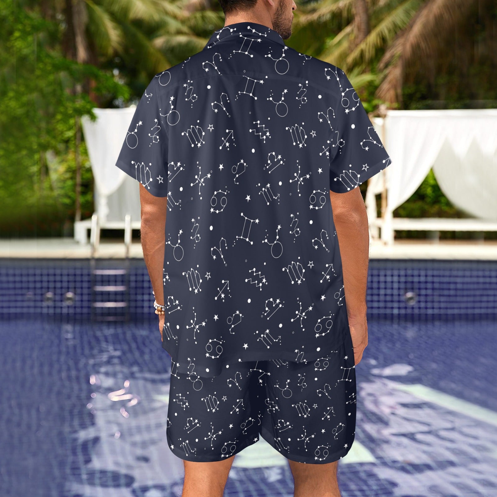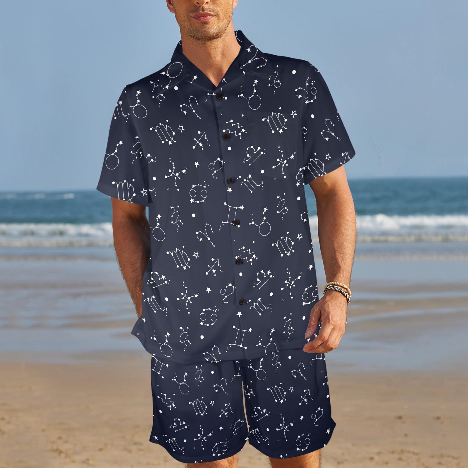 Constellation Pattern Print Design 05 Men's Beach Shirt and Shorts Set