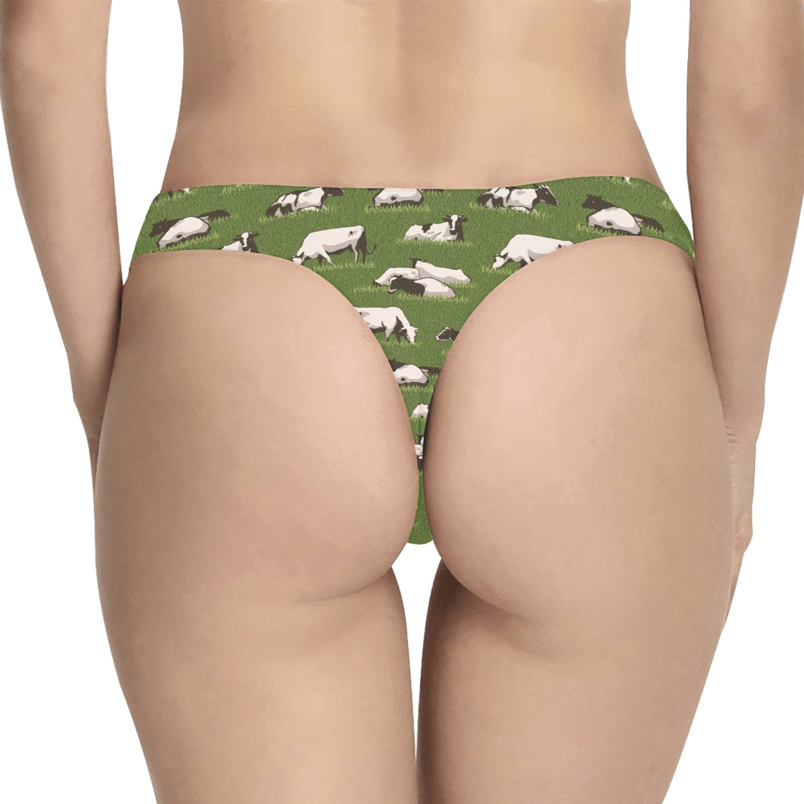 Cow on Grass Print Pattern Women's Thongsis custom-made-to-order and handcrafted to the highest quality standards.