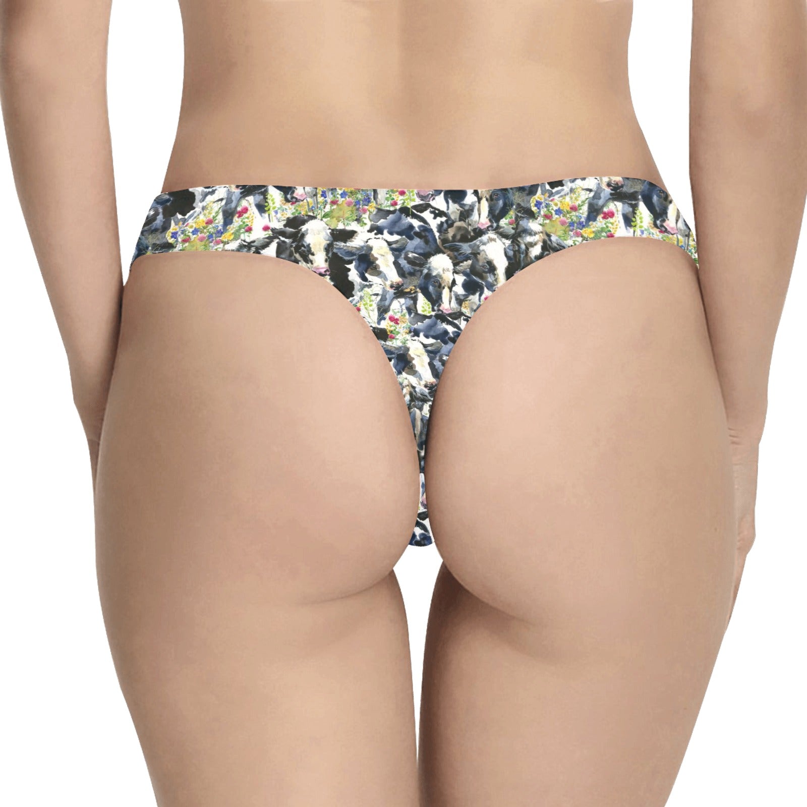Cow Watercolor Print Pattern Women's Thongsis custom-made-to-order and handcrafted to the highest quality standards.
