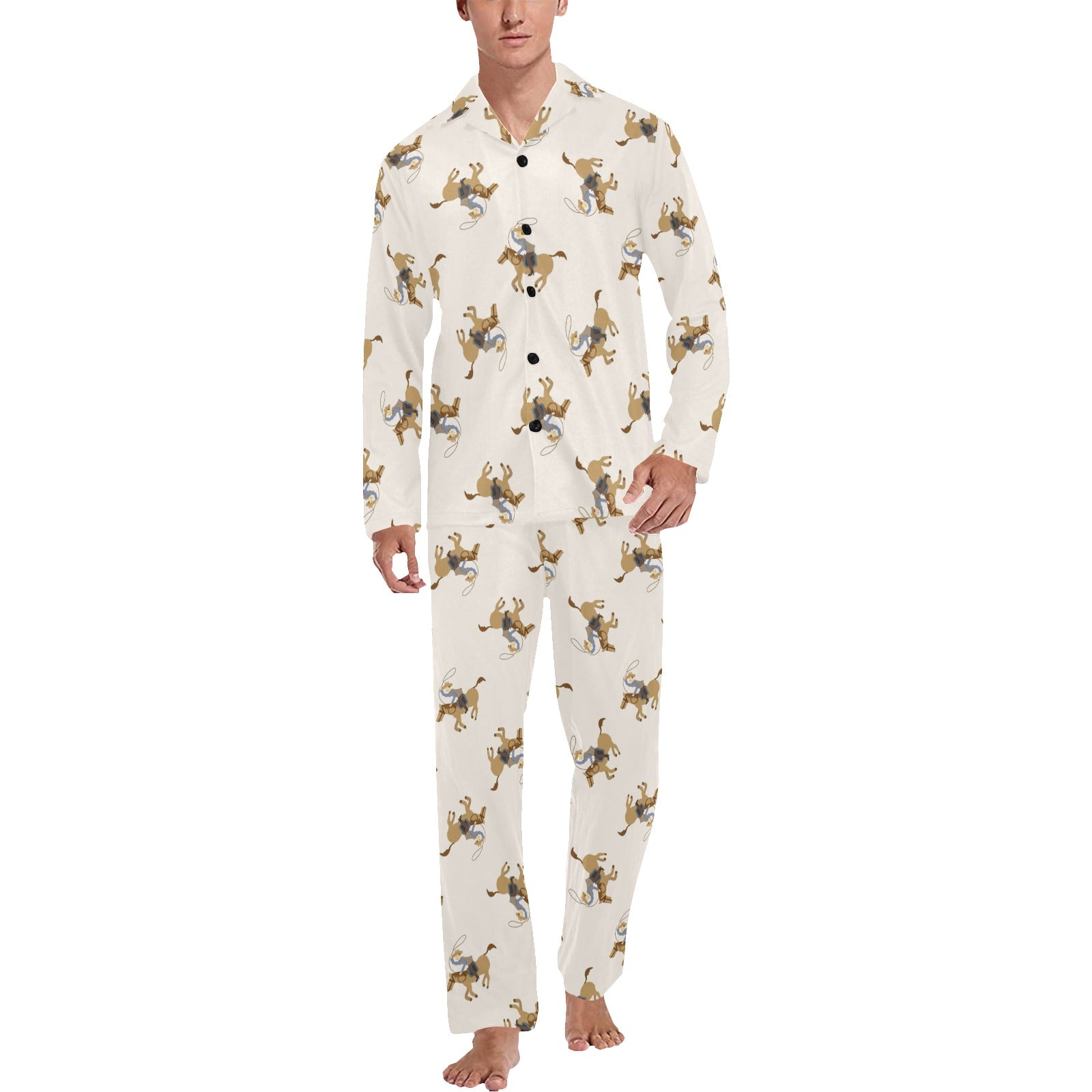 Cowboy Pattern Print Design 01 Men's Long Pajama Set Made to Order Item. It is hand-cut and sewn just for your order! This process starts as soon as your order is placed and may have a processing time of 5-9 business days before it ships.