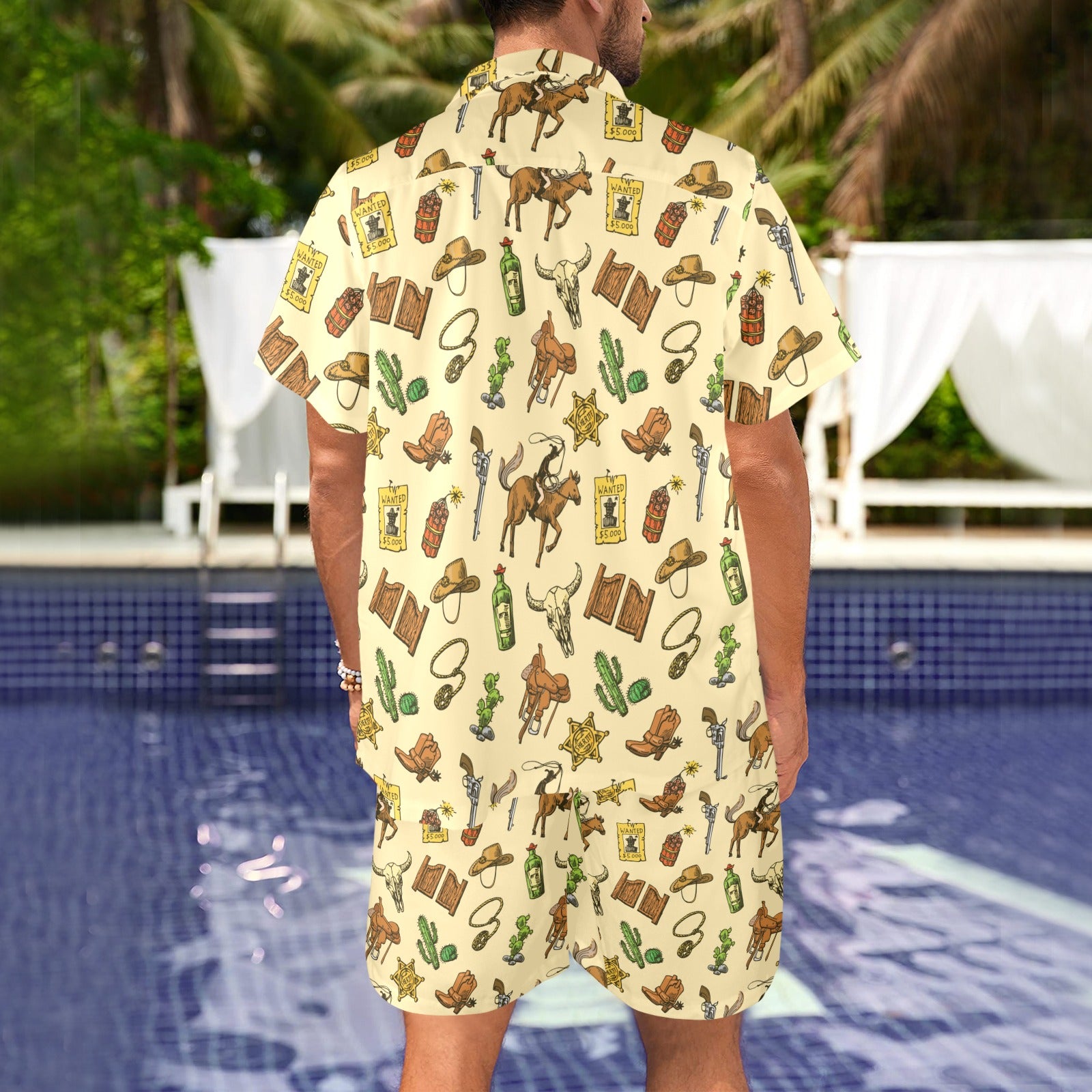 Cowboy Pattern Print Design 04 Men's Beach Shirt and Shorts Set