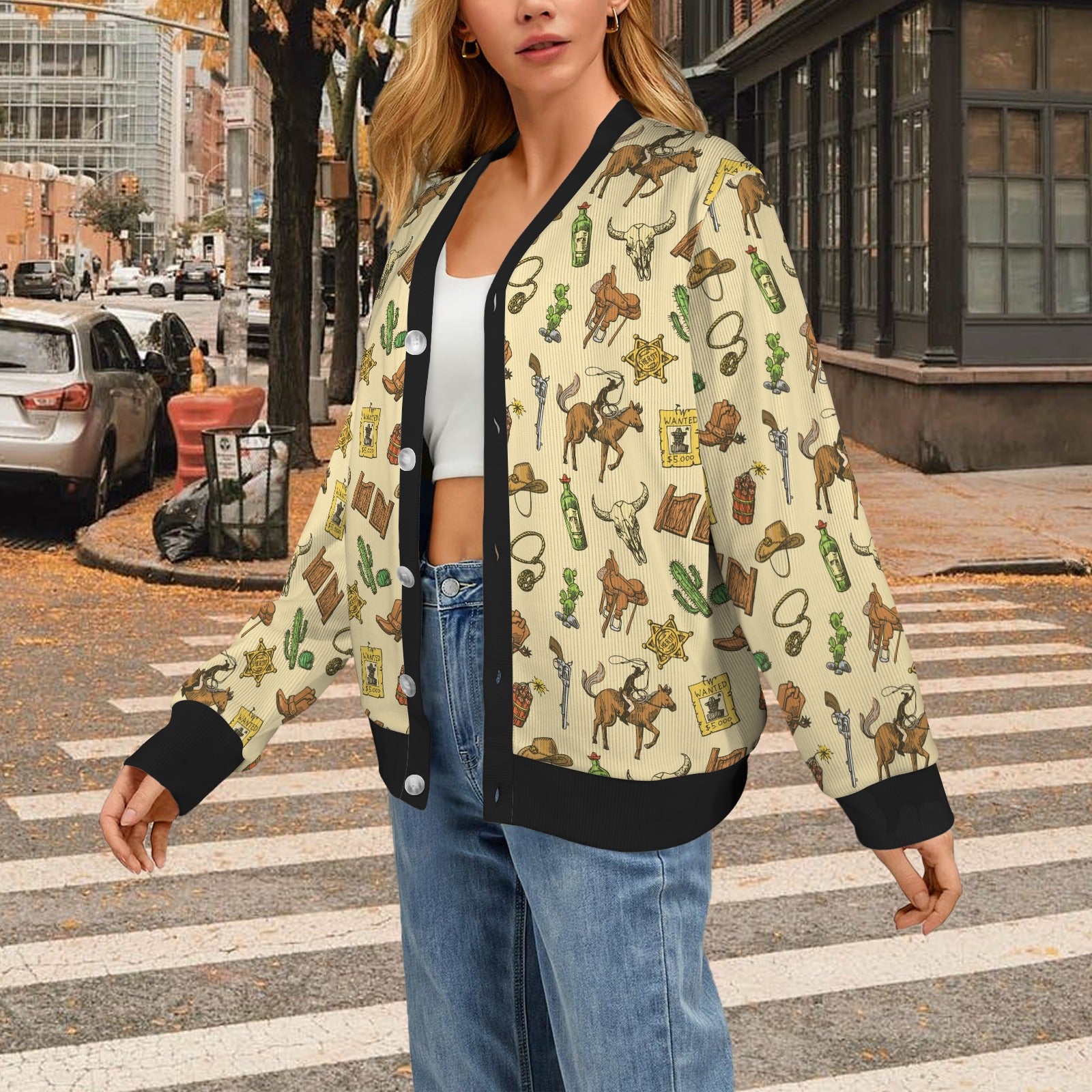 Cowboy Pattern Print Design 04 Women's Cardigan made-to-order and handcrafted to the highest quality standards.