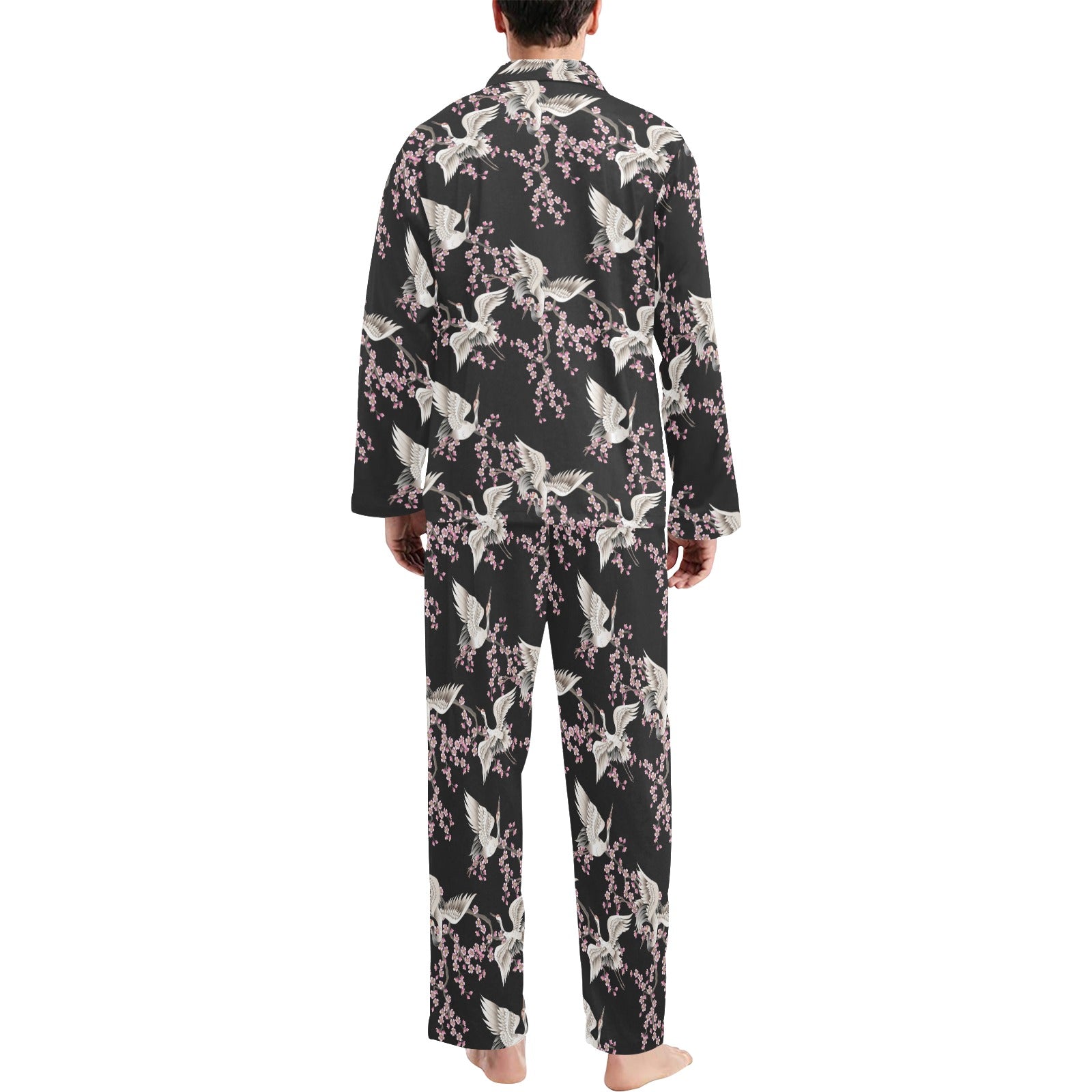 Crane Pattern Print Design 01 Men's Long Pajama Set Made to Order Item. It is hand-cut and sewn just for your order! This process starts as soon as your order is placed and may have a processing time of 5-9 business days before it ships.