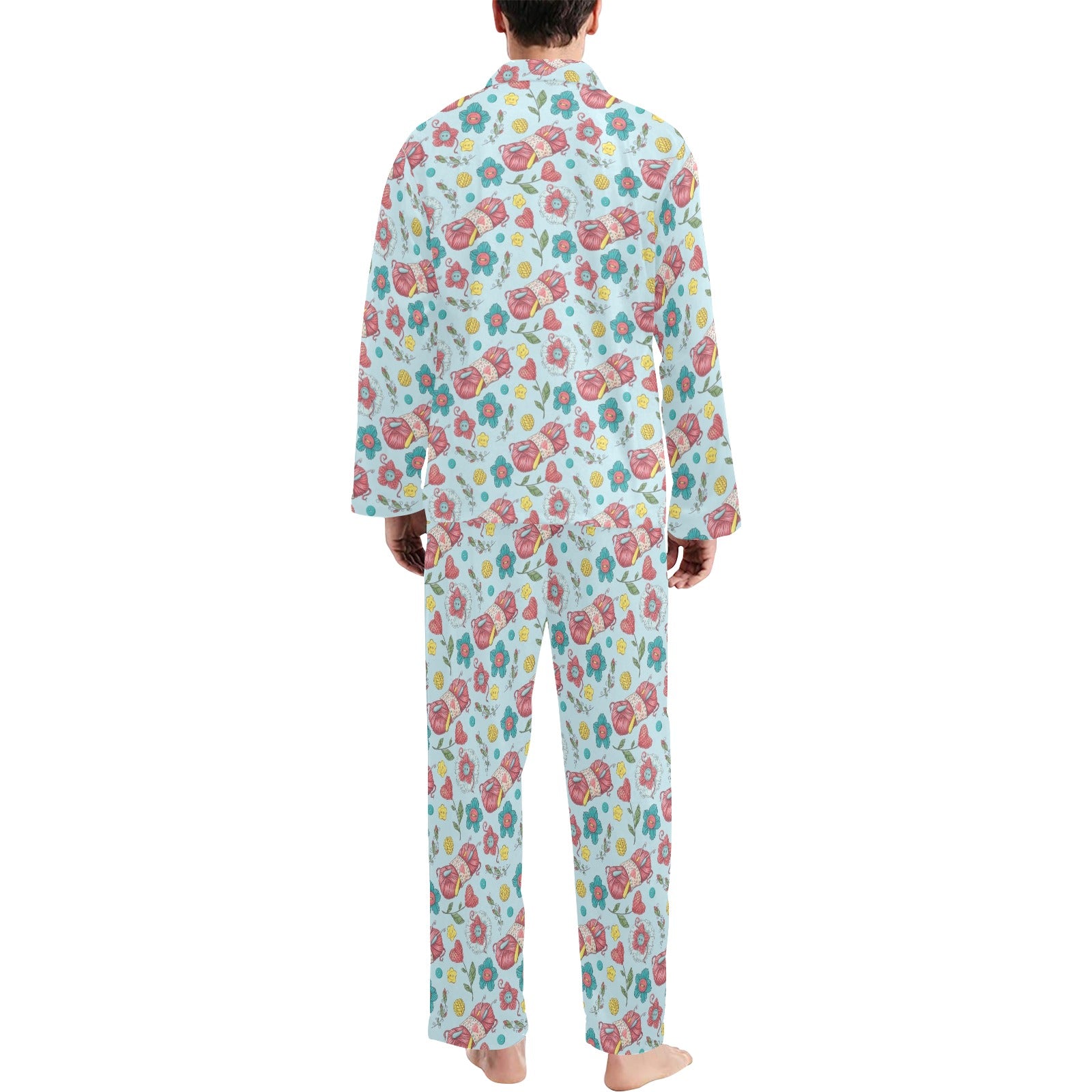 Crochet Pattern Print Design 01 Men's Long Pajama Set Made to Order Item. It is hand-cut and sewn just for your order! This process starts as soon as your order is placed and may have a processing time of 5-9 business days before it ships.