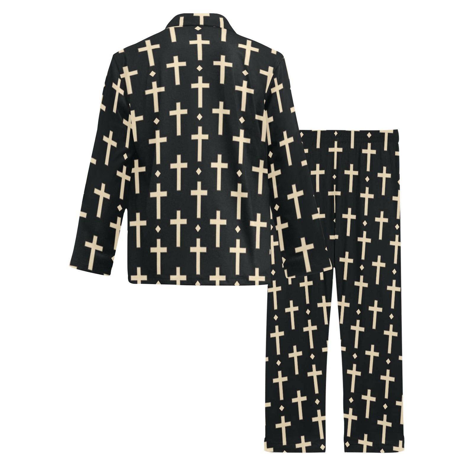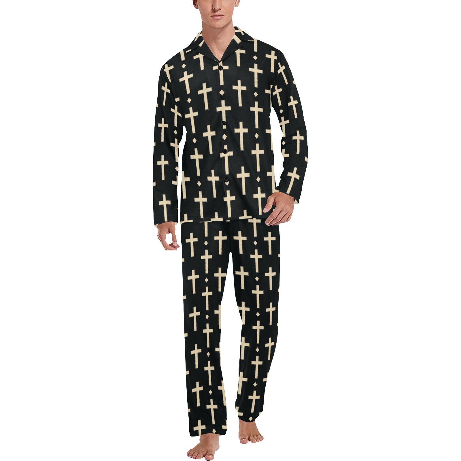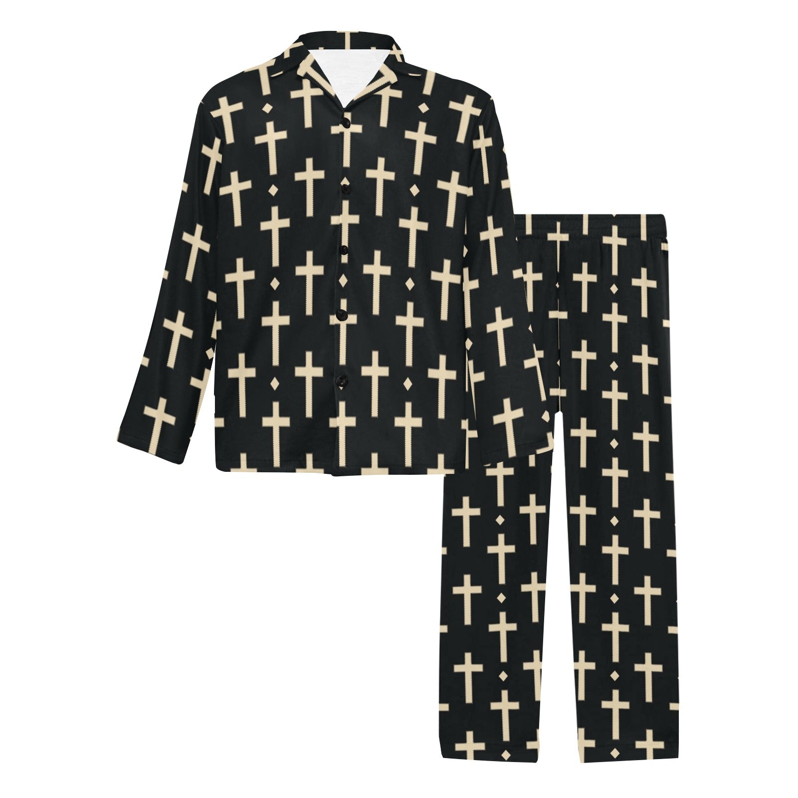 Cross Pattern Print Design 03 Men's Long Pajama Set