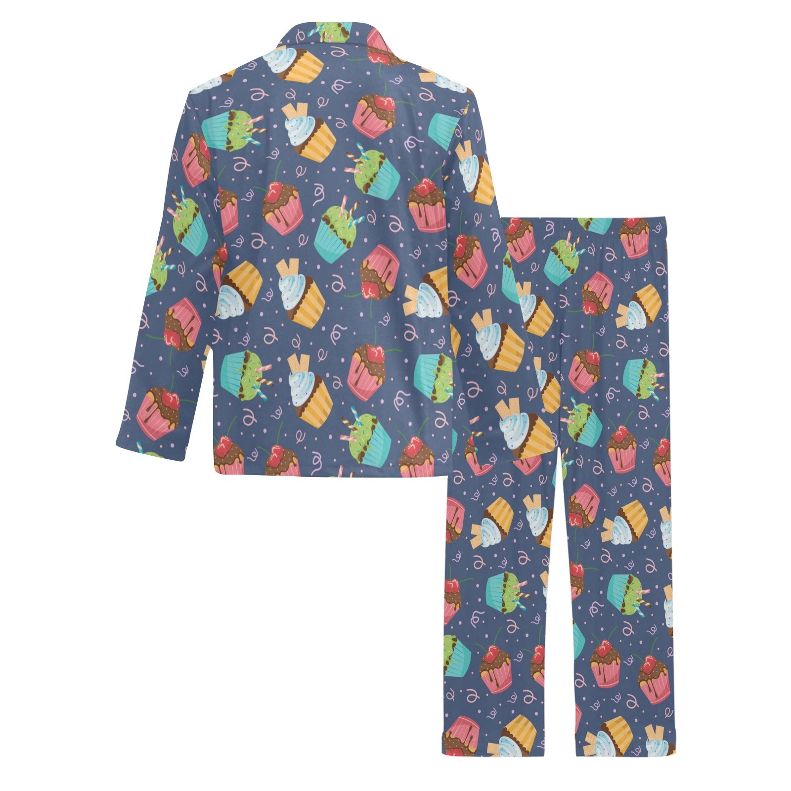 Cupcake Pattern Print Design 02 Men's Long Pajama Set Made to Order Item. It is hand-cut and sewn just for your order! This process starts as soon as your order is placed and may have a processing time of 5-9 business days before it ships.