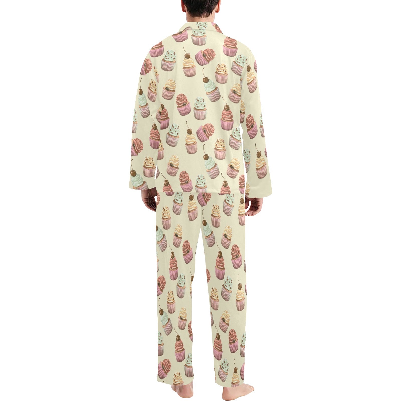 Cupcake Pattern Print Design 04 Men's Long Pajama Set Made to Order Item. It is hand-cut and sewn just for your order! This process starts as soon as your order is placed and may have a processing time of 5-9 business days before it ships.