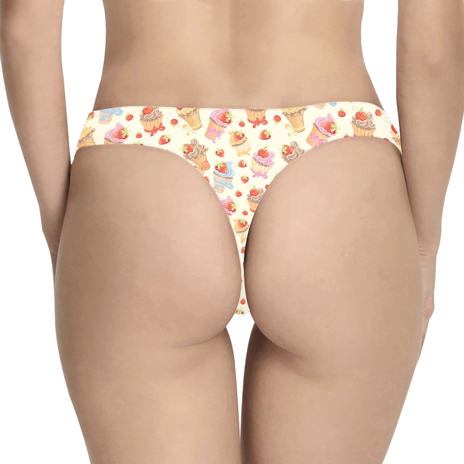Cupcakes Strawberry Cherry Print Women's Thongs