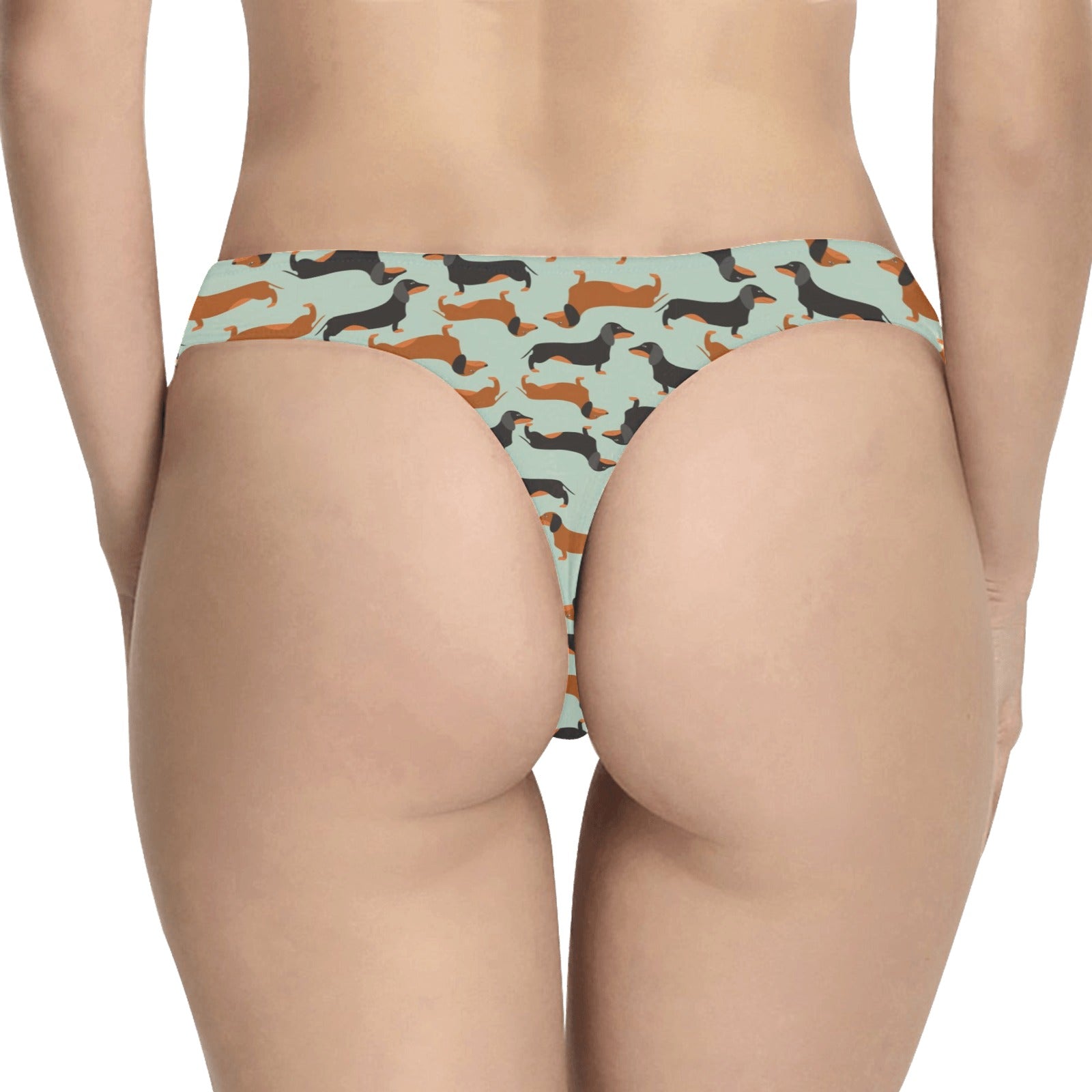 Dachshund Cute Print Pattern Women's Thongsis custom-made-to-order and handcrafted to the highest quality standards.