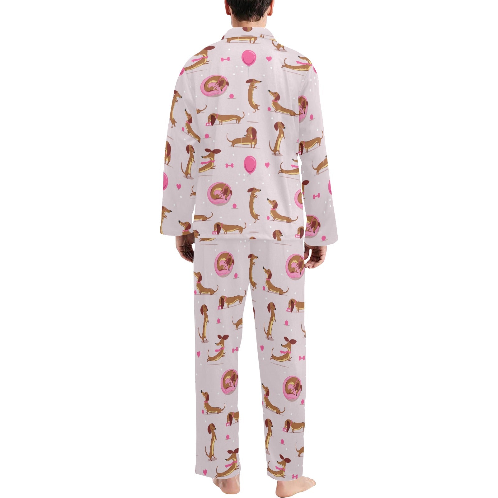 Dachshund Pattern Print Design 10 Men's Long Pajama Set
