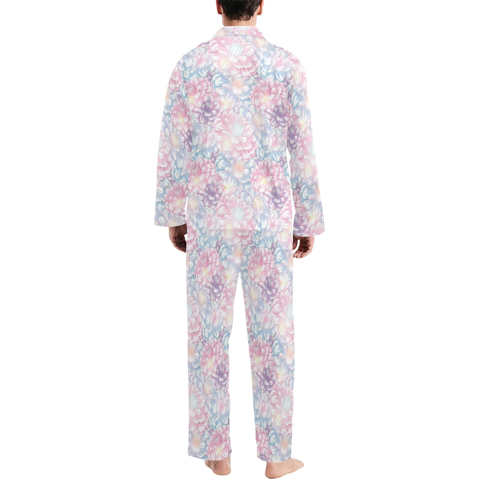 Dahlia Pattern Print Design 01 Men's Long Pajama Set Made to Order Item. It is hand-cut and sewn just for your order! This process starts as soon as your order is placed and may have a processing time of 5-9 business days before it ships.