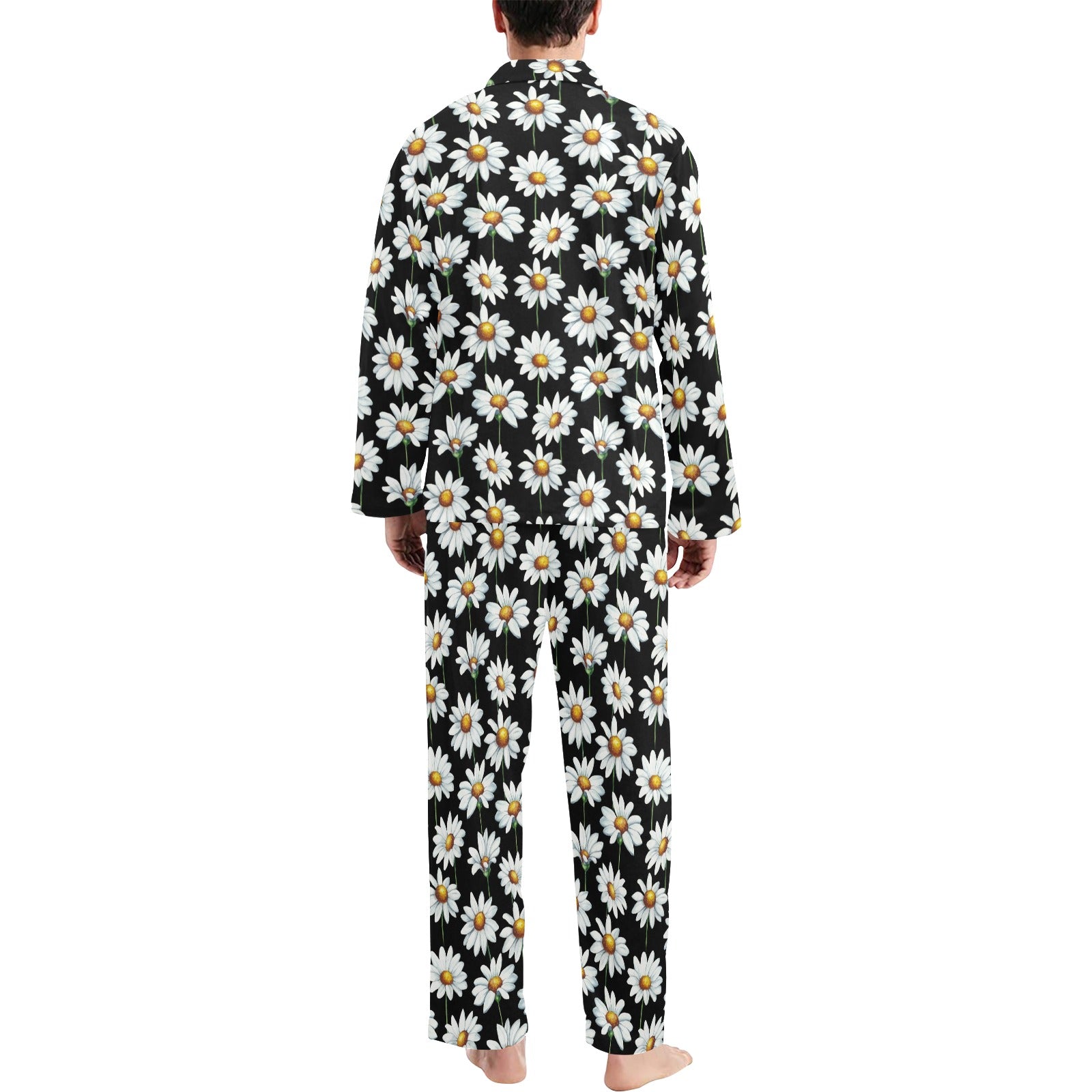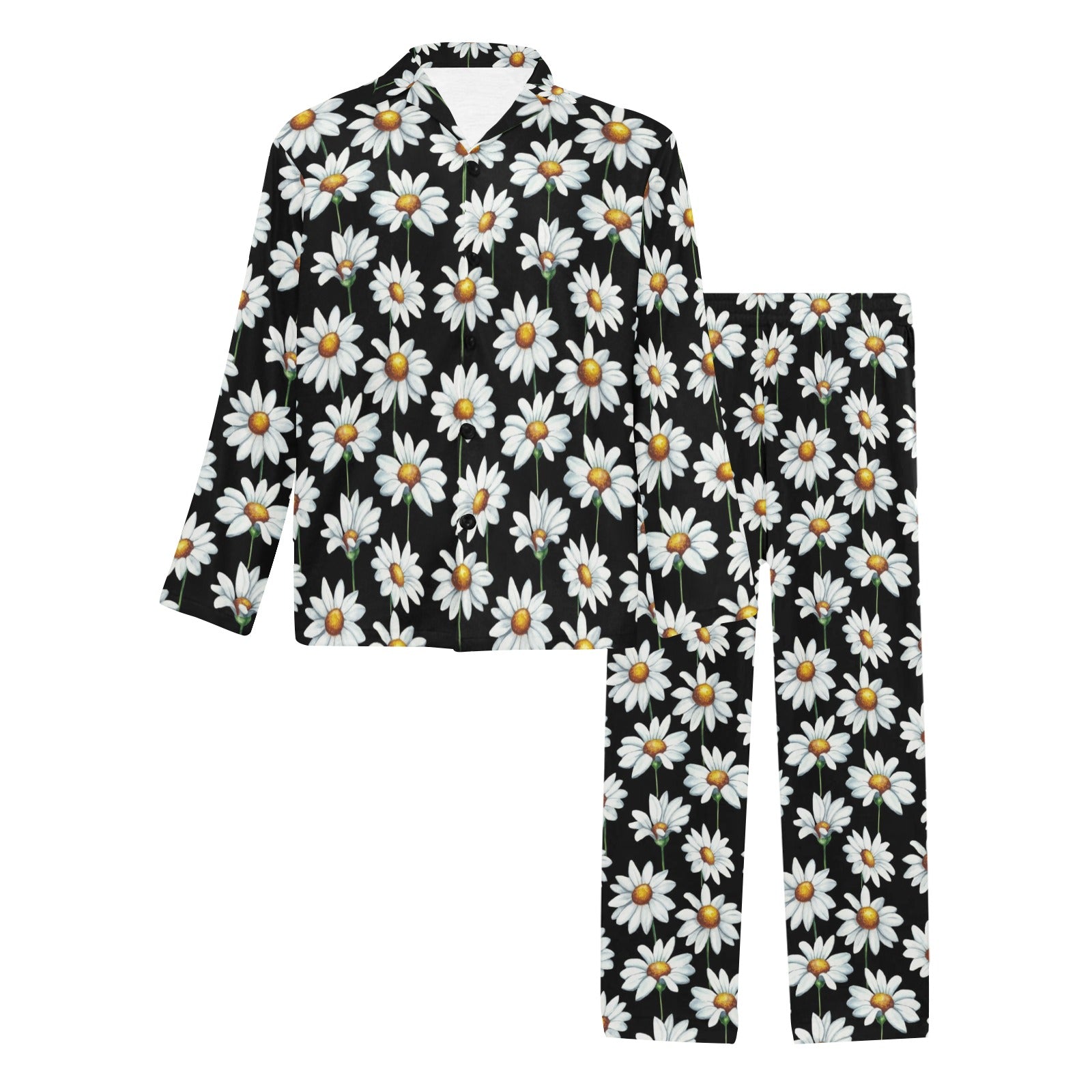 Daisy Print Pattern Men's Long Pajama Set custom-made-to-order and handcrafted to the highest quality standards.