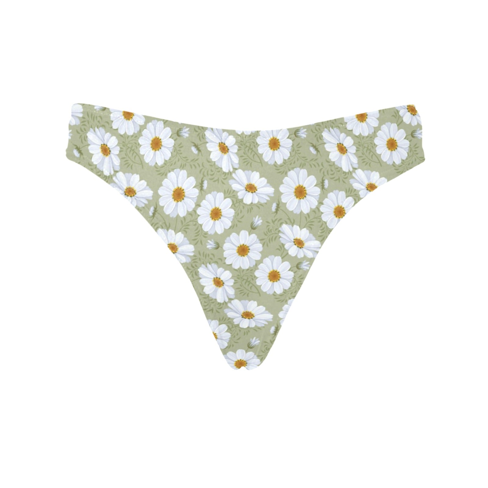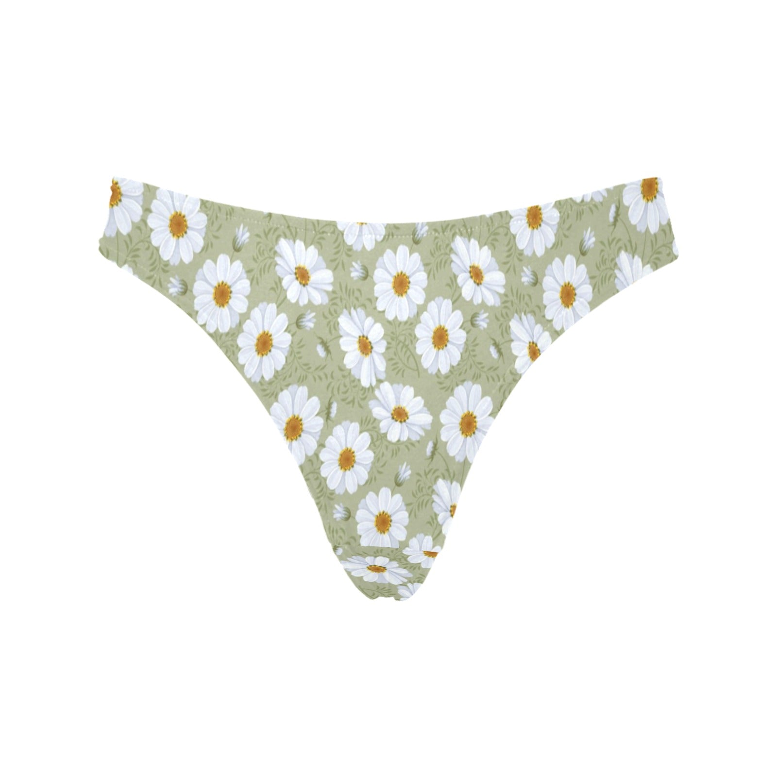 Daisy Yellow Print Pattern Women's Thongsis custom-made-to-order and handcrafted to the highest quality standards.